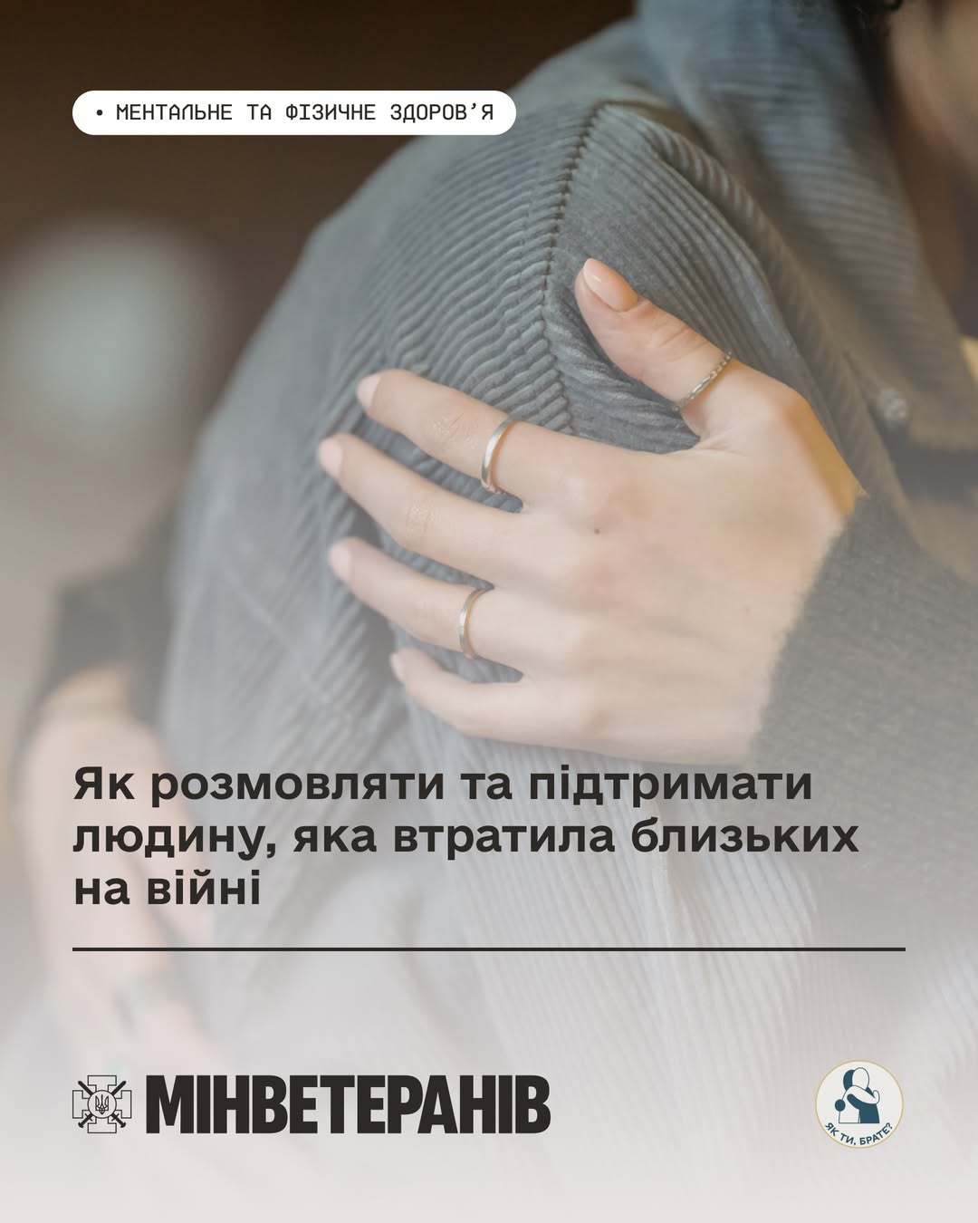 Пам’ятайте, що ви вже вмієте підтримувати. Коли хтось сумує, ви виявляєте співчуття, стаєте серйозними та дбайливими. Ці природні людські реакції – саме те, що допомагає. Військові та волонтери, які щодня стикаються з подібними ситуаціями, використовують саме такі підходи. Робіть те, що для вас природно. Ваша звичайна поведінка, сповнена емпатії, буде найціннішою.