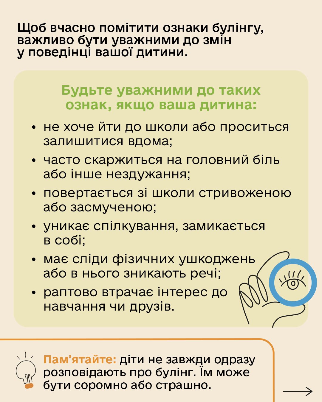 Цей матеріал зібрав ключові поради для батьків, щоб допомогти їм розпізнати булінг, зрозуміти його відмінності від звичайних конфліктів, виявити тривожні сигнали, що вказують на страждання дитини, та знати, як діяти в таких ситуаціях. Захист дітей від насильства та створення безпечного освітнього простору — це спільне завдання батьків, педагогів та суспільства в цілому.