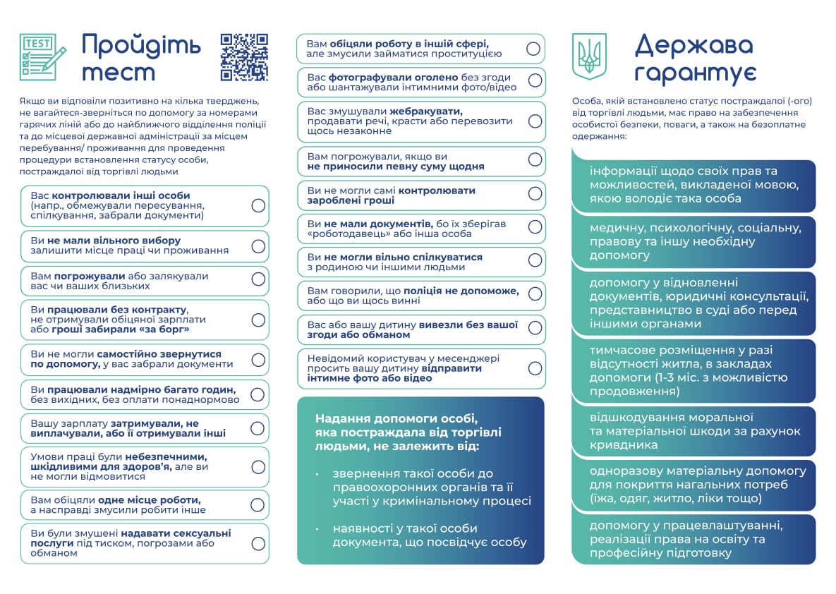 Більше інформації ви можете знайти на офіційному сайті www.stoptrafficking.org. Пам’ятайте, що обізнаність та своєчасне звернення за допомогою можуть врятувати життя та здоров’я.