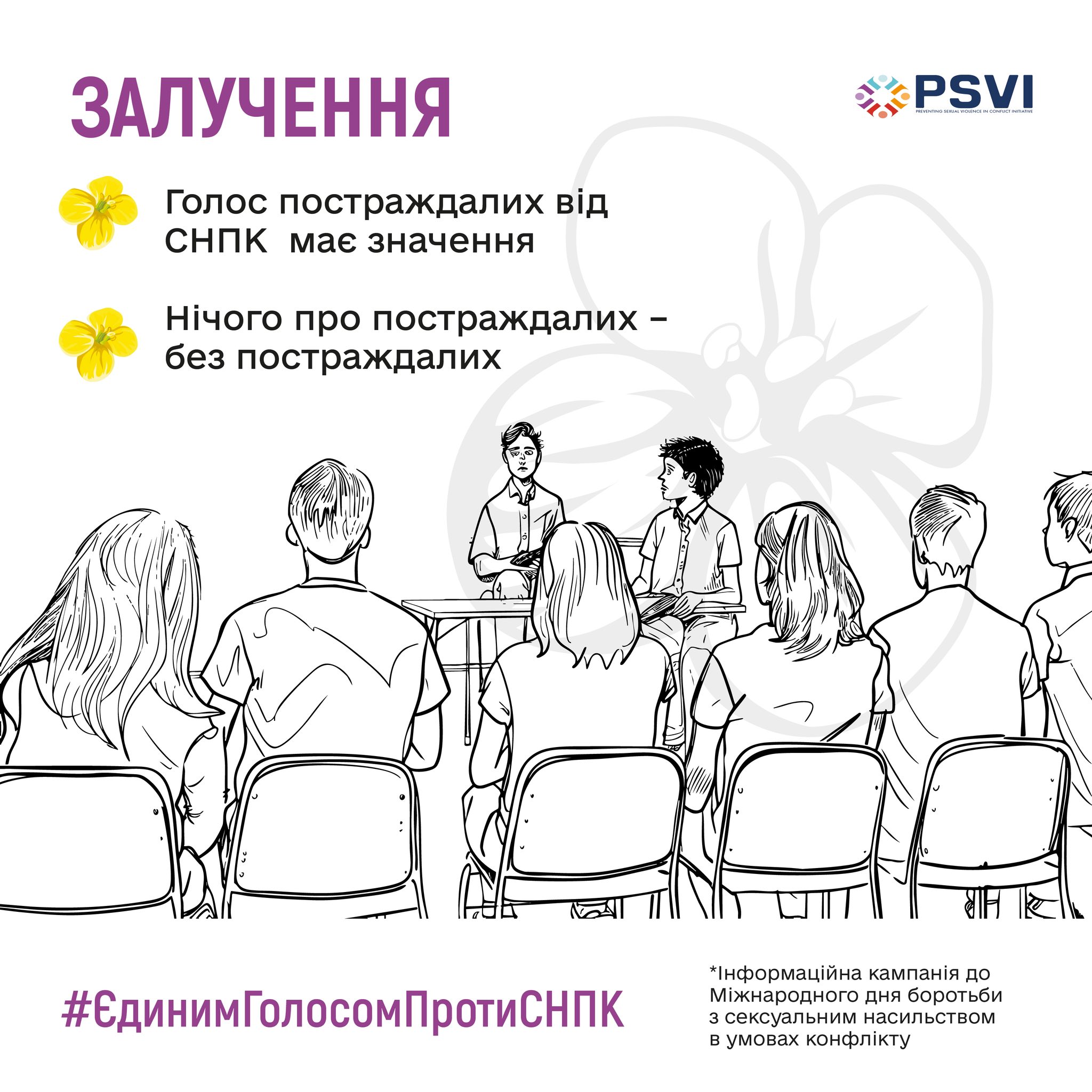 #ЄдинимГолосомПротиСНПК: доєднуйтесь до інформаційної кампанії до Міжнародного дня протидії сексуальному насильству, пов’язаному з війною.