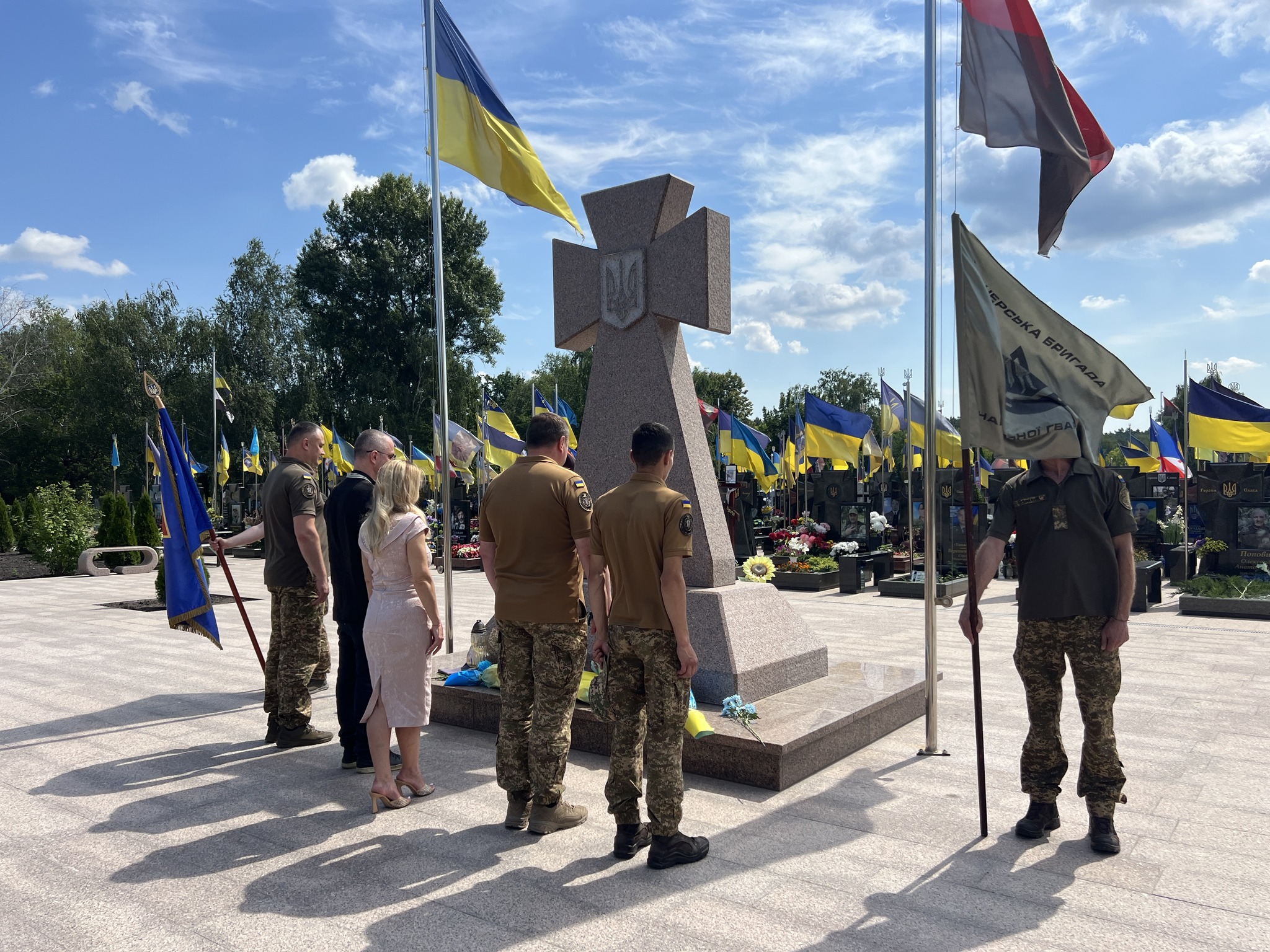 🇺🇦З нагоди Дня Української Державності голова Деснянської райдержадміністрації Максим Бахматов спільно з бійцями 27 Печерська бригада Національної гвардії України та керівником апарату Світланою Демченко вшанували героїв, захисників України усіх часів та мирних мешканців, які боролися за свободу та незалежність, поклавши квіти до пам’ятного знаку Меморіального монументу загиблим Захисникам і Захисницям України на Лісовому кладовищі.