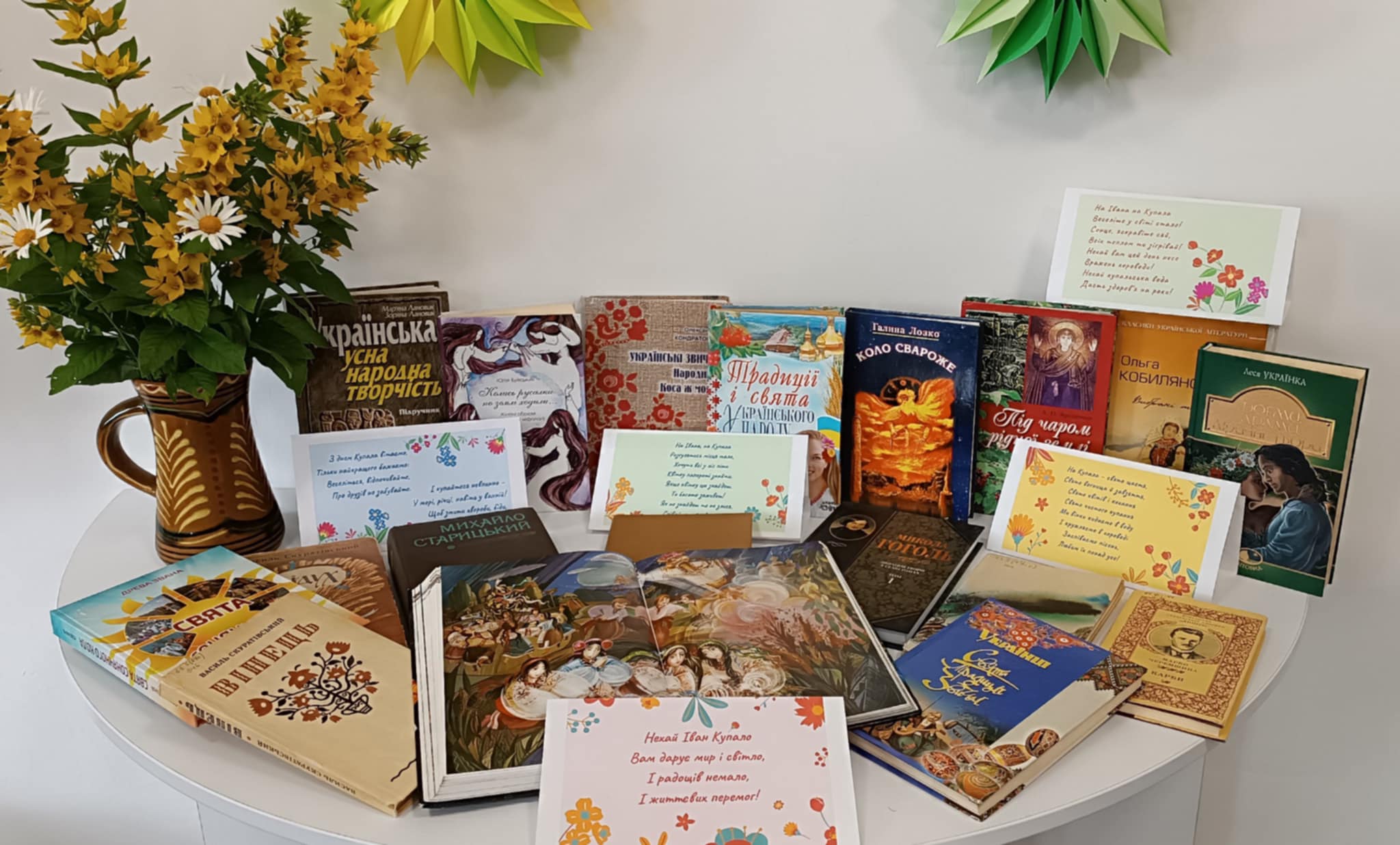 📖 Відвідувачам була представлена тематична книжкова добірка. Запропонована література розповідає про культуру побуту українського народу, знайомить з історією виникнення свята Івана Купала, пов’язаними з цим днем звичаями, обрядами, прикметами, повір’ями та традиціями святкування.