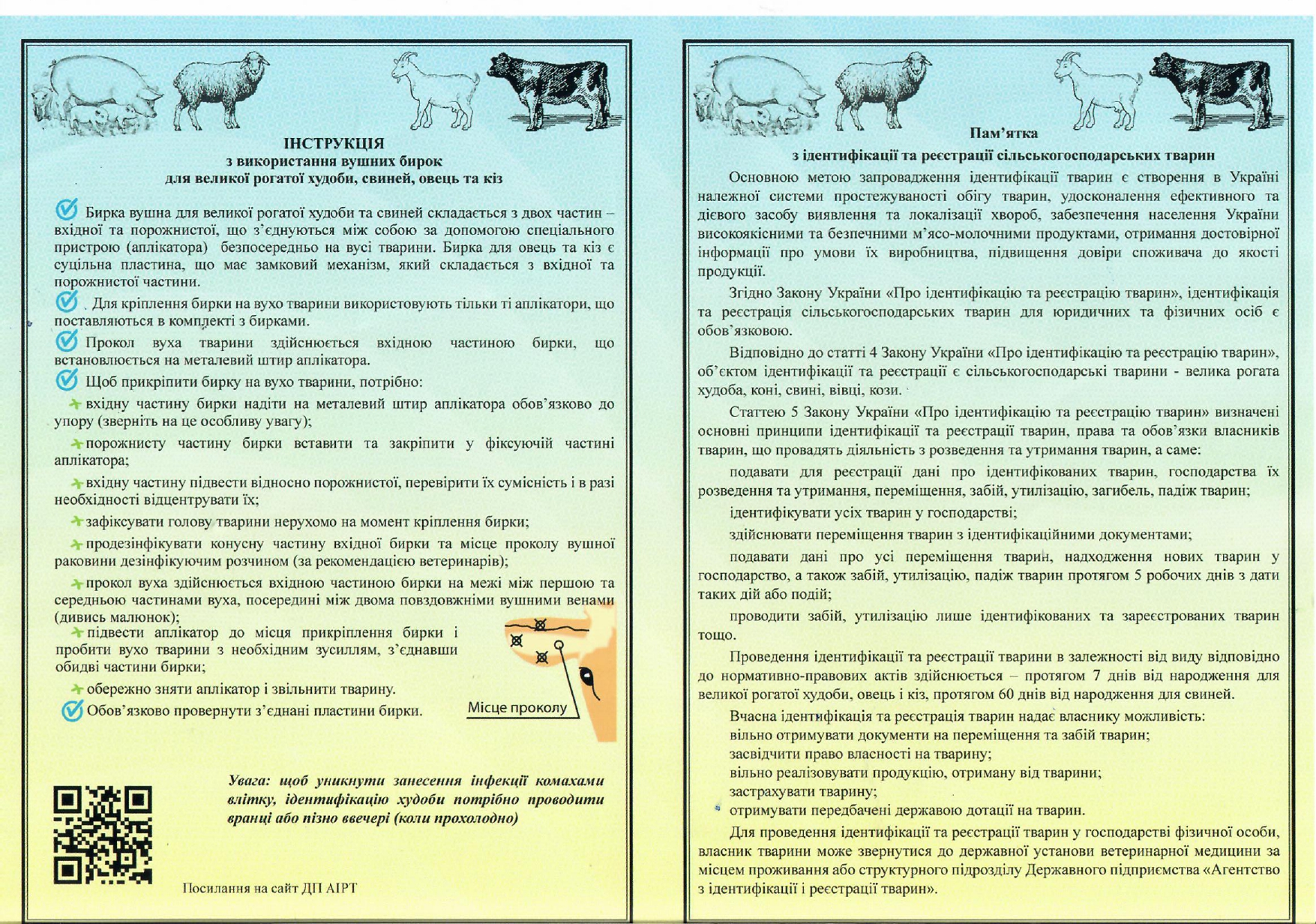 Для проведення ідентифікації та реєстрації тварин у господарстві юридичної особи, власник або утримувач тварин має звернутися до відповідної обласної філії ДП «Агентство з ідентифікації і реєстрації тварин» для отримання роз’яснень, необхідних матеріалів та засобів ідентифікації. Ідентифікація тварин – це інвестиція в майбутнє вашого господарства та всієї галузі.