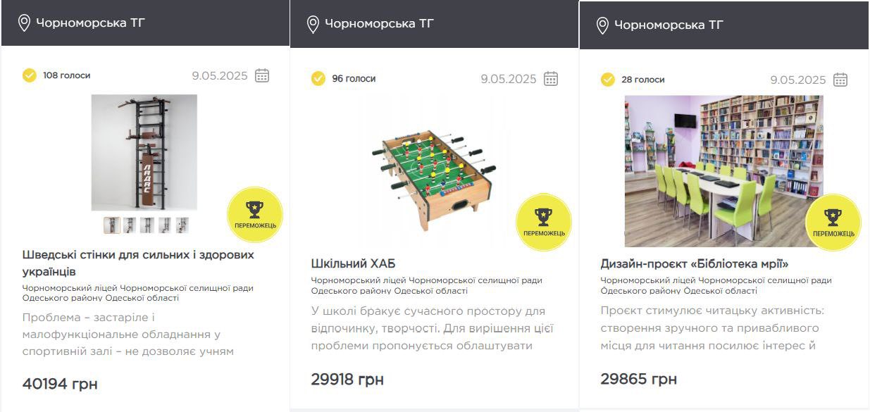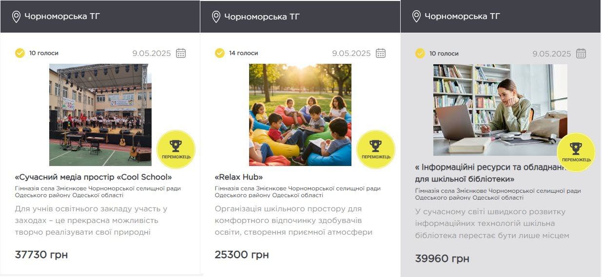 У Чорноморському ліцеї перемогли наступні проєкти:
