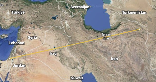 Відстань від Ізраїлю до ураженого аеропорту в Ірані / © ClashReport