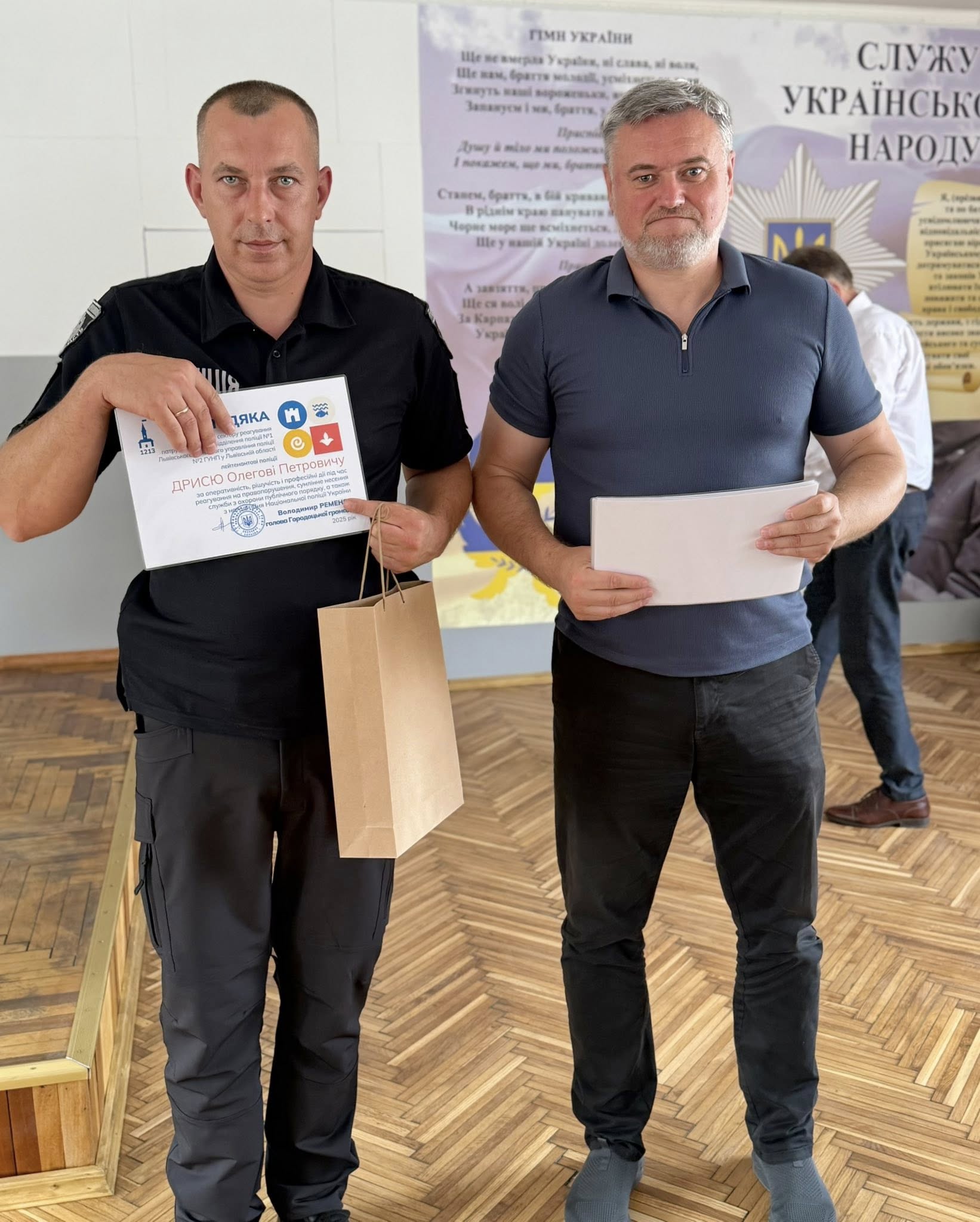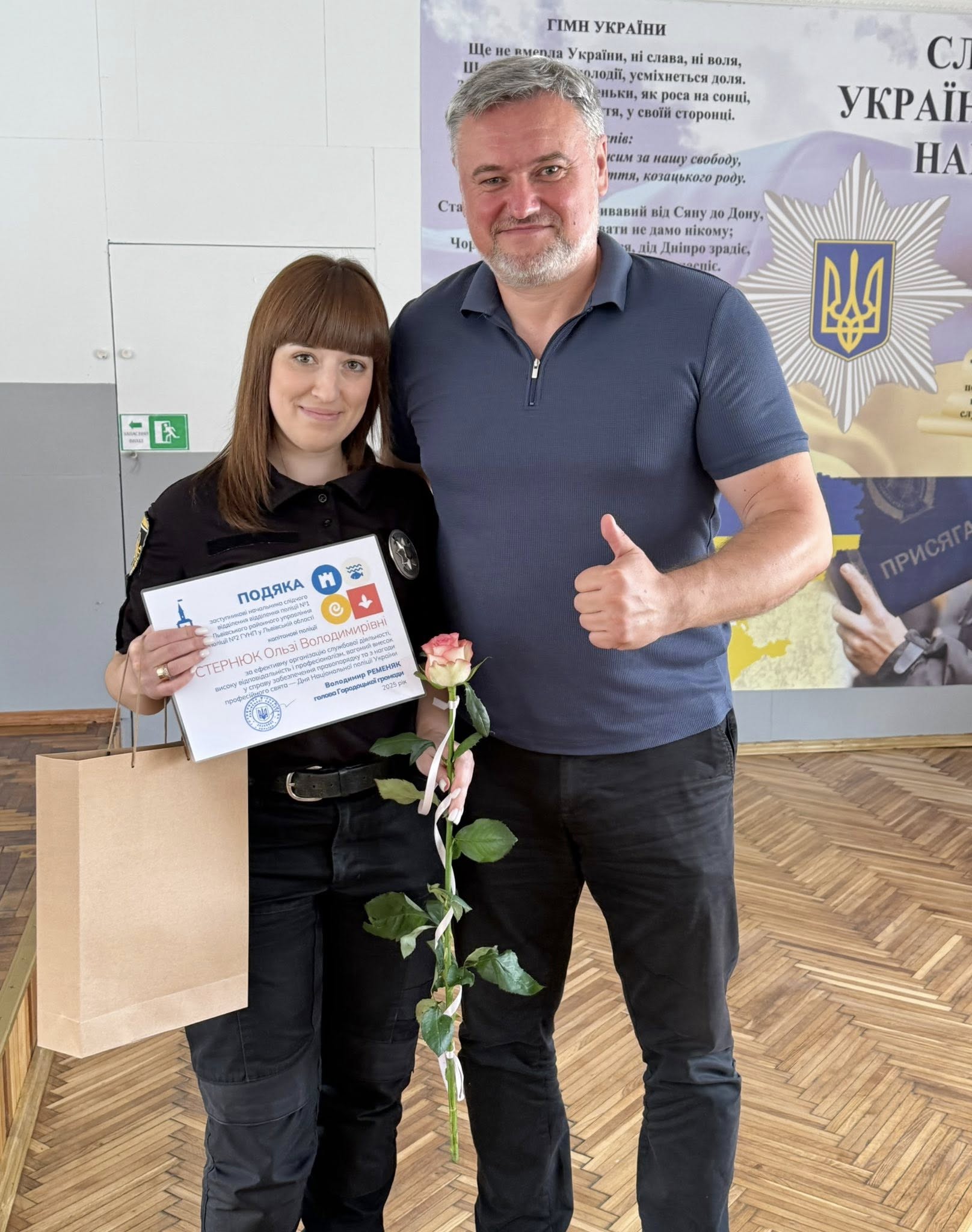 Голова Городоцької громади, Володимир Ременяк, особисто привітав правоохоронців, висловивши щиру подяку за їхню невтомну працю та плідну співпрацю з місцевою владою. Він особливо відзначив високий професіоналізм та відданість справі колективу поліції та її очільника, начальника відділення поліції #1 Львівського РУП № 2 ГУНП у Львівській області, підполковника поліції Олександра Подвисоцького. У своєму вітальному слові Володимир Ременяк побажав поліцейським міцного здоров’я, невичерпної енергії, благополуччя та всіляких гараздів, наголошуючи на їхній ключовій ролі у забезпеченні безпеки та правопорядку в громаді.