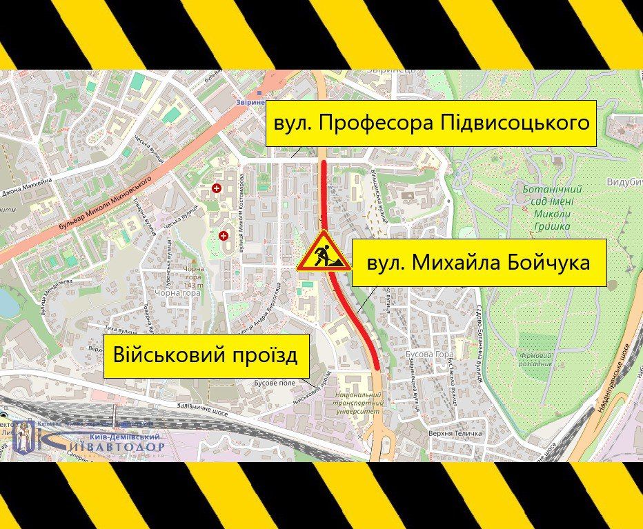 Обмеження руху на вулиці Бойчука у Києві: ремонт дороги