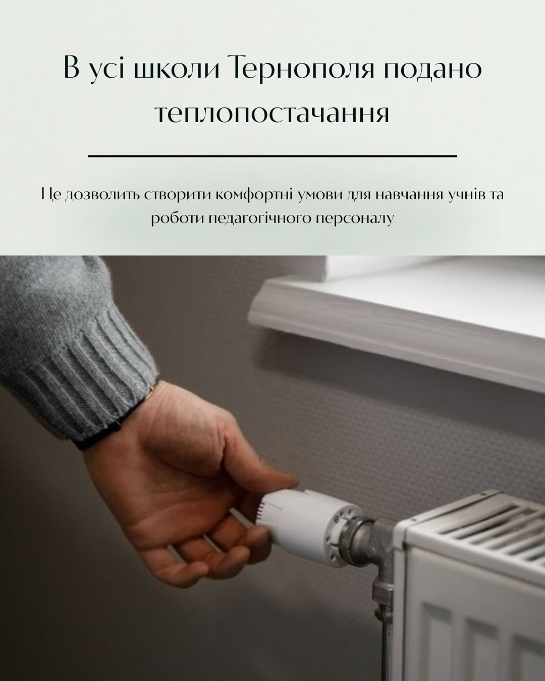 🌡️ Відсьогодні, 13 жовтня, у школах Тернополя розпочато опалювальний сезон. Відповідно до графіка, міська влада забезпечила подачу тепла до всіх загальноосвітніх навчальних закладів міста. Це важливий крок для забезпечення комфортних умов навчання та роботи педагогічного колективу протягом холодного періоду.