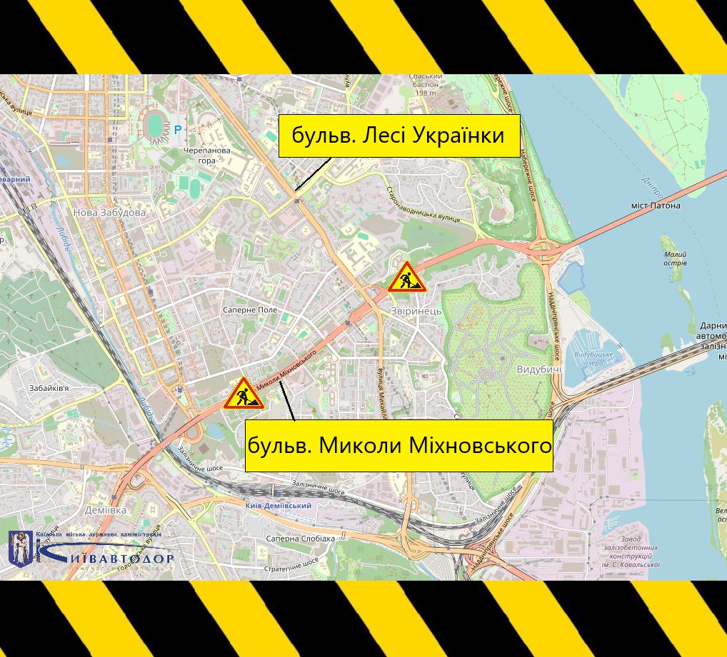 Обмеження руху на бульварі Миколи Міхновського в Києві