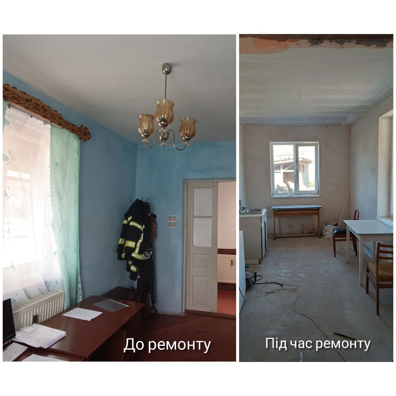 З серпня поточного року на об’єкті активно тривають ремонтні роботи. Вже виконано наступні види робіт: прокладання нових трубопроводів водопостачання, заміна системи опалення поліетиленовими трубами, влаштування колодязів для септику. Також створено перегородки з гіпсокартонних плит на металевому каркасі для майбутнього туалету та душової кімнати. Проведено демонтаж застарілих дверних коробок, влаштовано стяжки підлоги для подальшого укладання керамічної плитки, а також здійснено монтаж нової електропроводки та гіпсокартонних стель.
