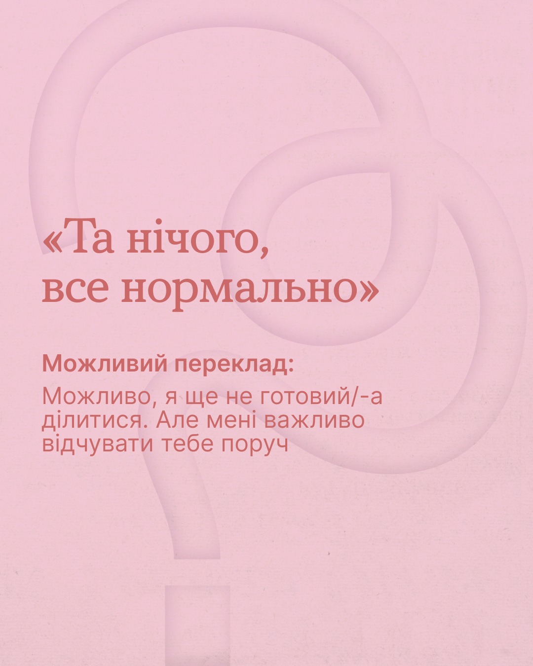 Іноді ми відчуваємо сильну втому, тривогу чи роздратування, не завжди усвідомлюючи, що нам насправді потрібно. Слова, які ми говоримо, можуть не відображати наших справжніх почуттів і бажань, стаючи своєрідною «бронею», що приховує вразливість або бажання піклуватися про інших. Це природно, але ми можемо навчитися розпізнавати справжні емоції та почуття, виражати власні без страху й з увагою до почуттів співрозмовника. Для цього інколи необхідний внутрішній перекладач, який допоможе коректніше інтерпретувати слова та поведінку інших.