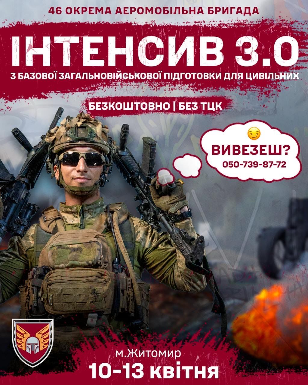 Участь в Інтенсиві 3.0 – це ваш крок до захисту країни. Це не просто навчання, це можливість стати частиною команди, яка стоїть на захисті України. Ви отримаєте корисні знання, практичні навички та познайомитеся з однодумцями. Захист країни починається з кожного з нас! Приєднуйтеся до 46 окремої аеромобільної бригади ДШВ ЗС України!