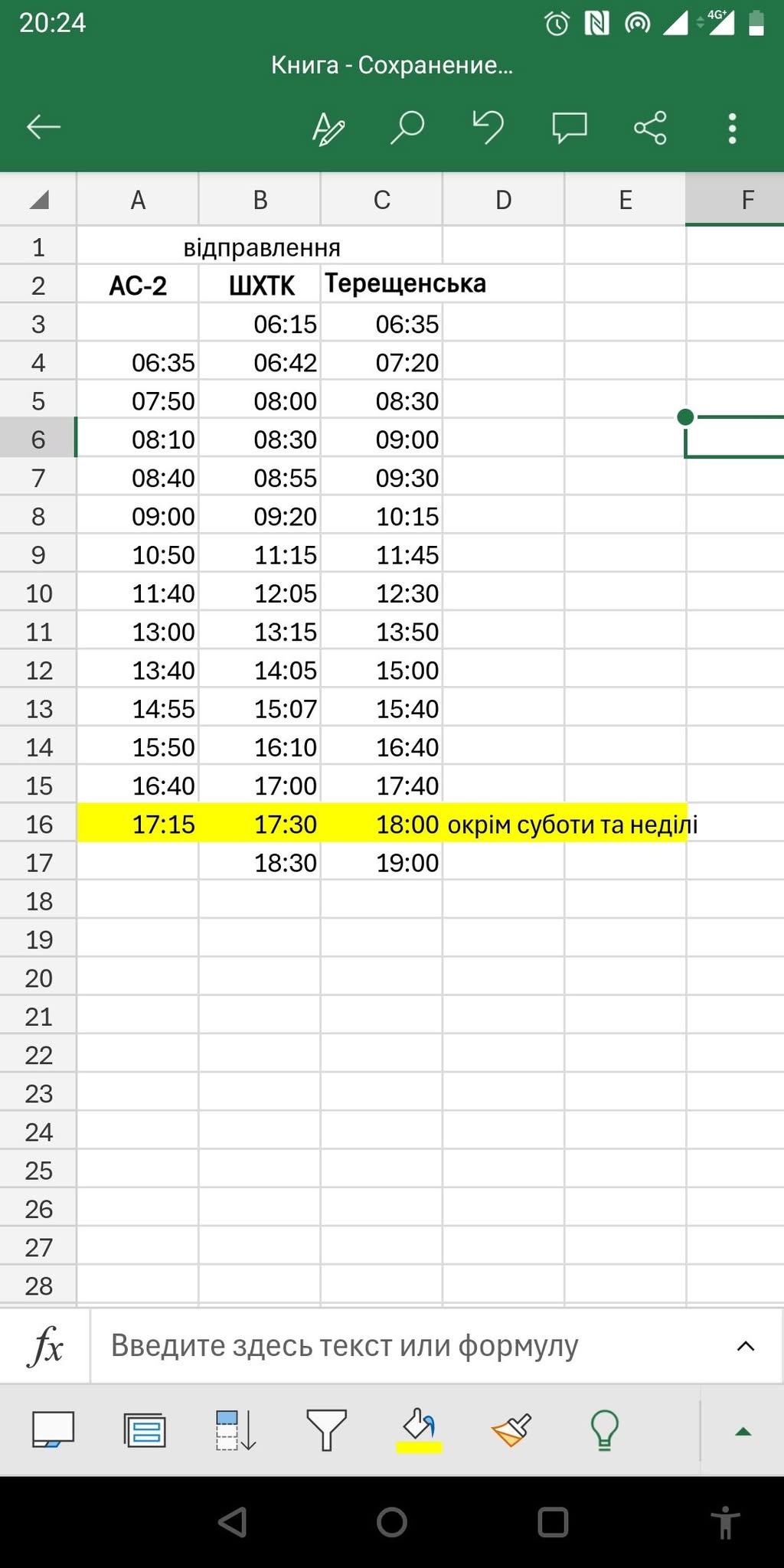 * **4:50** – Відправлення з вул. Берегова (Некрасова) по вул. Свободи, вул. Знаменська до станції Терещенська (прибуття о 5:42).
