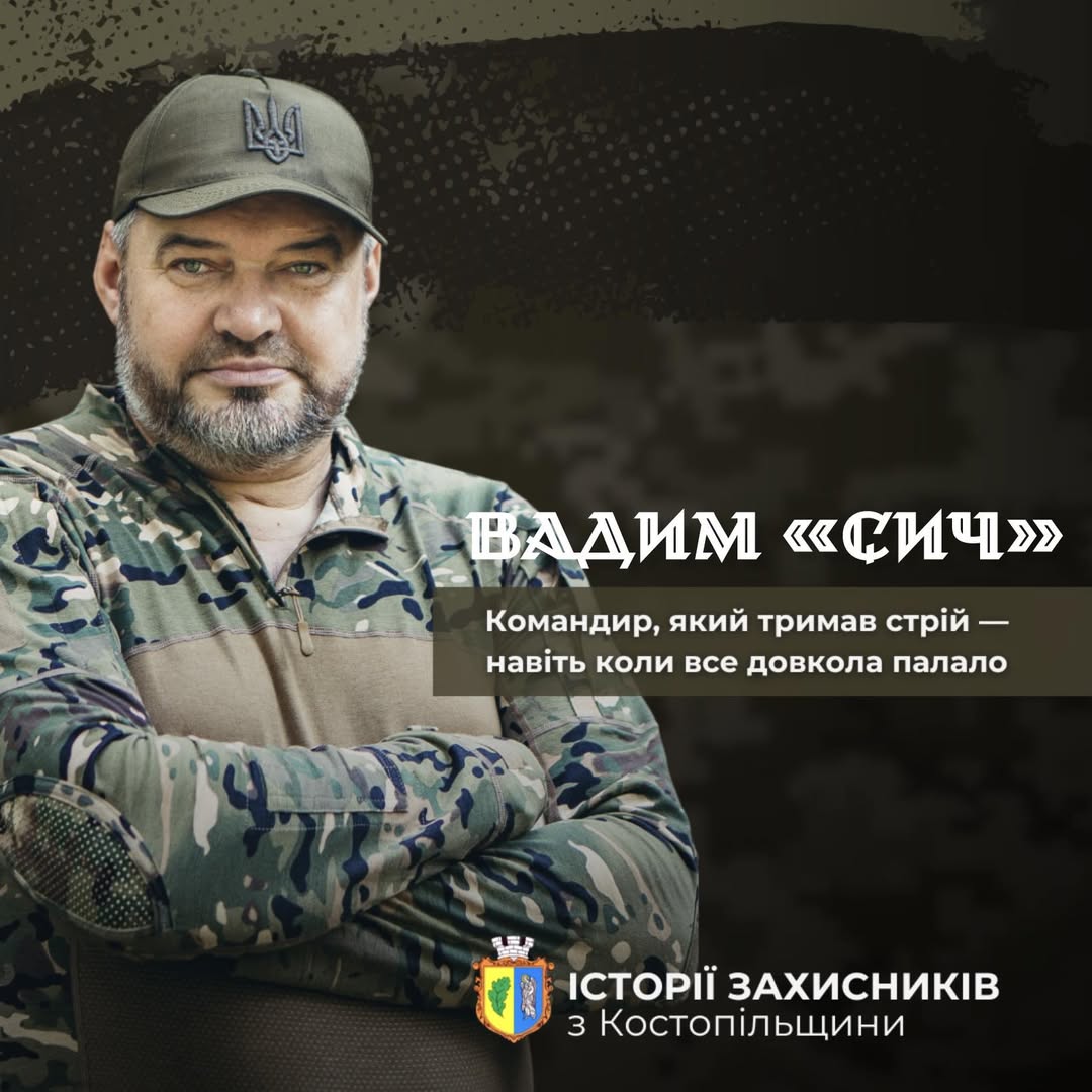 Вадим Сичугов, відомий під позивним «Сич», є командиром взводу легендарної бригади «ГОРИНЬ». Його шлях у військовій справі розпочався задовго до повномасштабного вторгнення. З 2002 року він викладав інформатику та фізику в Костопільському ліцеї №3. Проте, поклик захищати Батьківщину привів його до лав ЗСУ. Вадим — доброволець, досвідчений інструктор та офіцер, який має бойовий досвід з 2015 року. Він брав участь у запеклих боях на Луганщині, Донеччині, обороняв Горлівку, пройшов через випробування Світлодарської дуги та Торецька. Навіть отримавши поранення, він не зламався, демонструючи неабияку стійкість та надихаючи побратимів. Його особистий приклад — це свідчення незламності духу українського захисника.