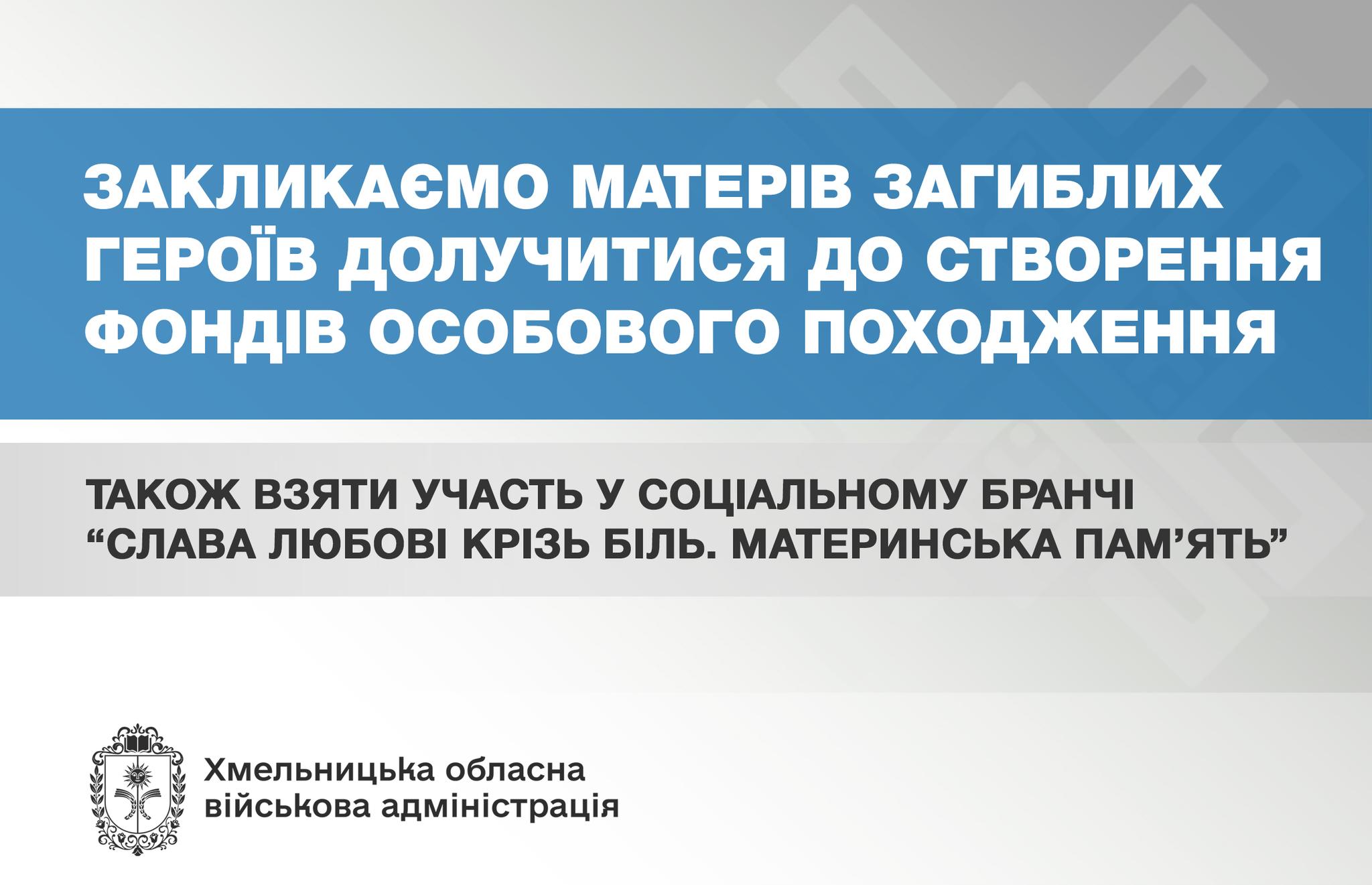 Закликаємо Матерів загиблих Героїв долучитися до створення фондів особового походження та взяти участь у соціальному бранчі “Слава любові крізь біль. Материнська пам’ять”.