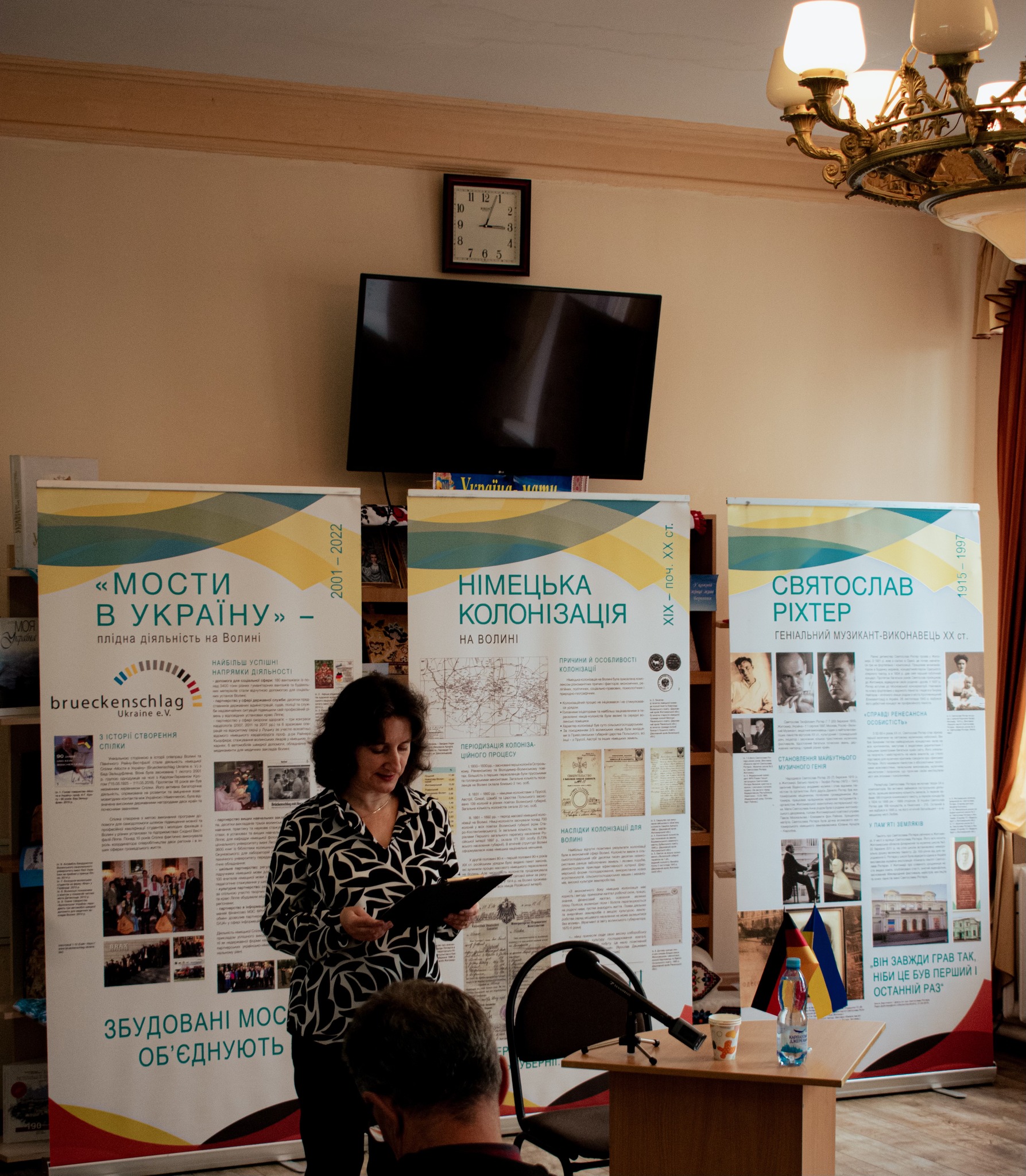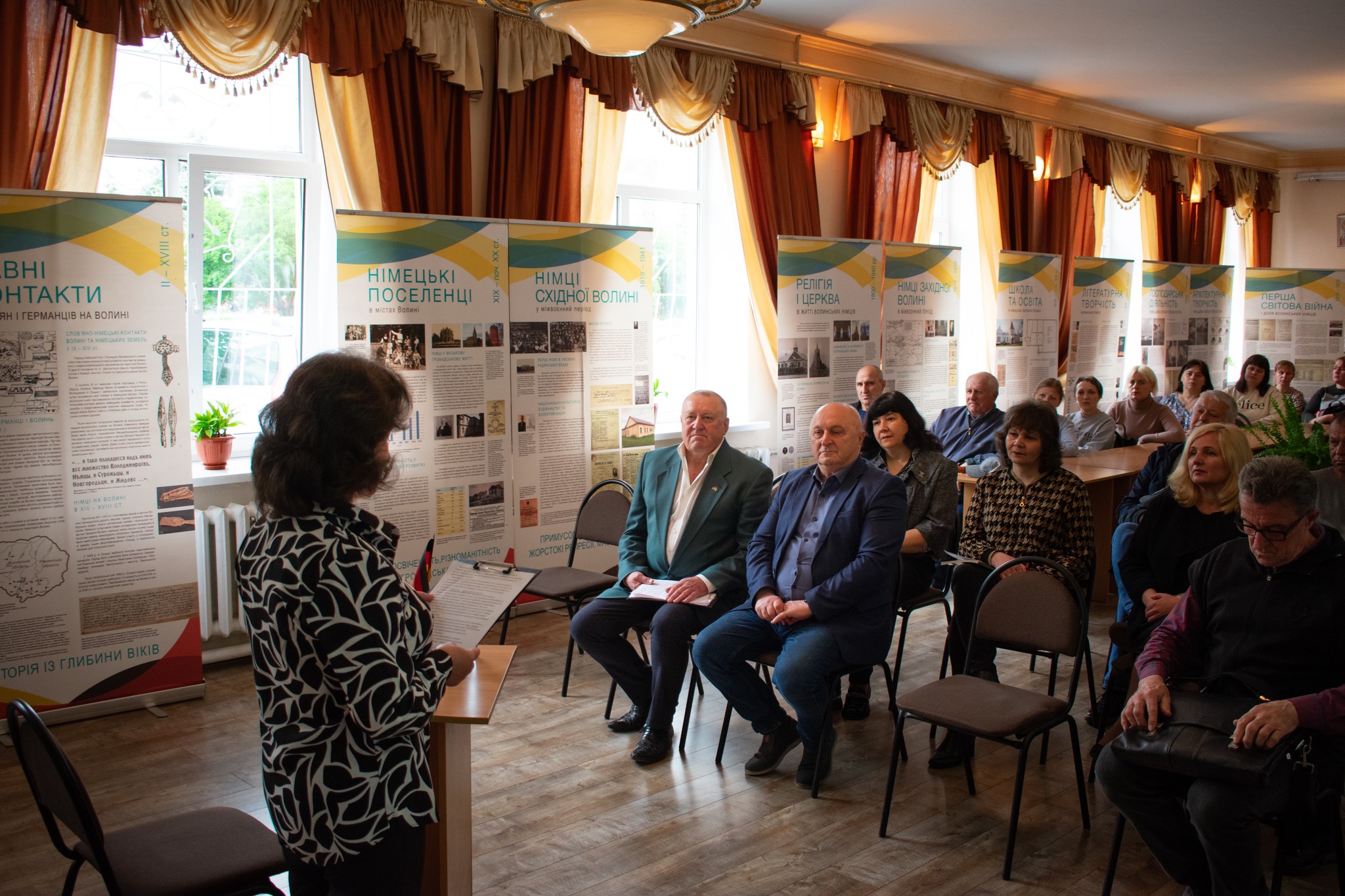 Голова ГО «МІЖНАРОДНЕ ТОВАРИСТВО НІМЦІВ УКРАЇНИ – ВІДЕРГЕБУРТ» Володимир Піньковський поділився своїми знаннями про традиції, мову та повсякденне життя етнічних німців. Його розповідь охопила історичну спадщину, що є важливою для розуміння культурного різноманіття України. Міський голова Володимир Москаленко та його заступниця Наталія Чижевська також взяли участь у заході. Володимир Москаленко підкреслив важливість міжнародного діалогу та збереження історичної пам’яті, наголосивши на значущості культурно-освітніх ініціатив. Він відзначив глибоке коріння древлянських земель та висловив подяку організаторам за їхню цінну ініціативу. Виставка «Волинь і Німеччина» стала платформою для обміну знаннями та досвідом.