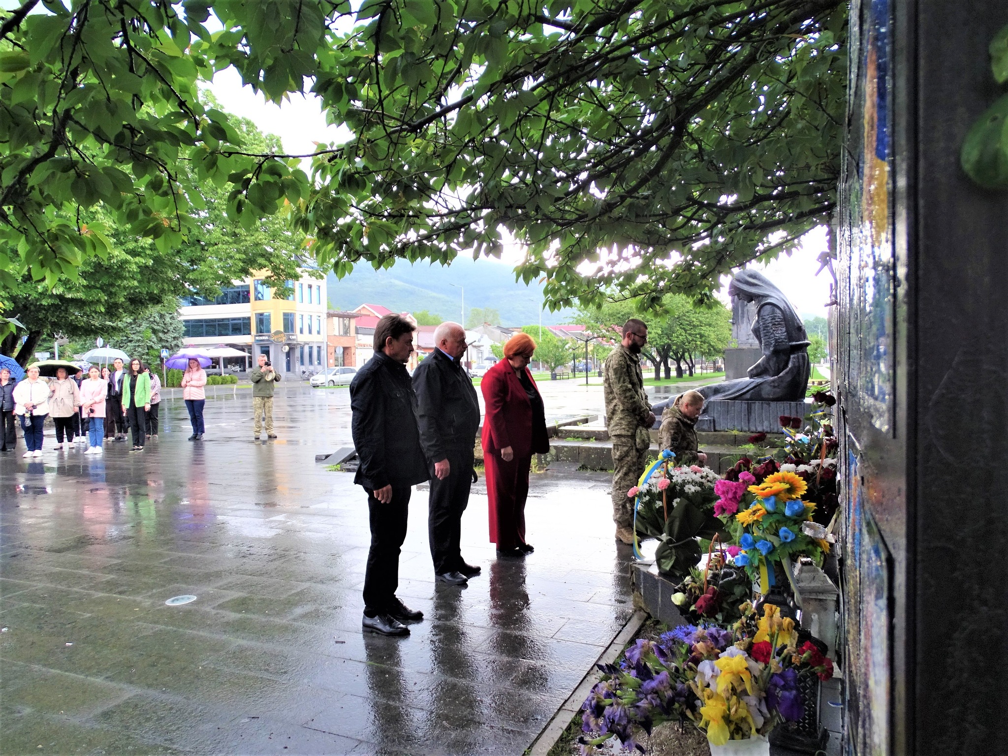 Сьогодні, у Виноградові, на центральній площі Миру, біля пам’ятної стели загиблих Героїв в російсько-українській війні, відбулося вшанування пам’яті Захисників з нагоди Дня Героїв та загальнонаціональної хвилини мовчання. Небо плакало сумним дощем, додаючи скорботи до цієї важливої події.