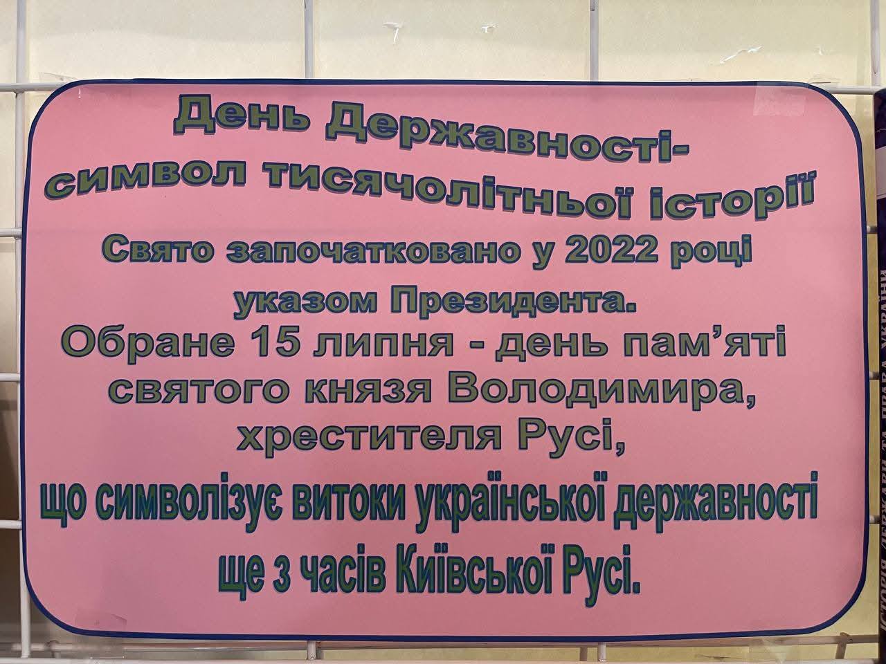 Щорічно, 15 липня, починаючи з 2021 року, українці відзначають День Української Державності. Приурочили його до вшанування пам’яті Київського князя Володимира Великого, який увійшов в історію як хреститель України-Русі та визначний державотворець. Ця значуща подія слугує нагадуванням про важливість збереження національної ідентичності, культури та мови. Упродовж багатьох століть український народ відчайдушно виборював свою незалежність і свободу, захищав рідну землю. Ця боротьба триває і сьогодні. Тепер, в умовах повномасштабної війни з російським ворогом, ми доводимо, що наша держава і наша суверенність – непорушні.