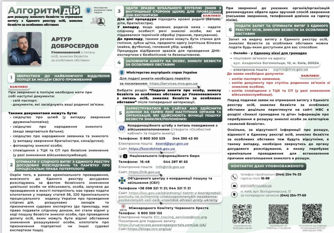 - Алгоритм дій родичів після отримання сповіщення про зникнення військовослужбовця.