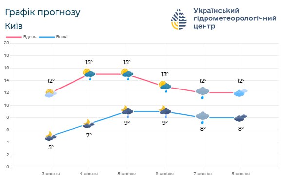 З 4 по 8 жовтня на Київщині та в самому місті Києві очікується приємна осіння погода. Синоптики прогнозують позитивну динаміку температури, без нічних заморозків і з помірно теплими днями. Небо буде затягнуте хмарами, час від часу можливий невеликий дощ, проте вночі 4 жовтня та протягом 8 жовтня опадів не передбачається. Київщина: нічна температура коливатиметься в межах 4-10°C, денна – 12-17°C. 7-8 жовтня очікується зниження температури на 2-3°C. Київ: нічна температура становитиме 7-9°C, денна – 12-15°C. Вітер буде переважно помірним, східного та південно-східного напрямку, з поступовою зміною на західний. Бережіть себе! Нехай сприятлива погода сприятиме реалізації ваших планів.