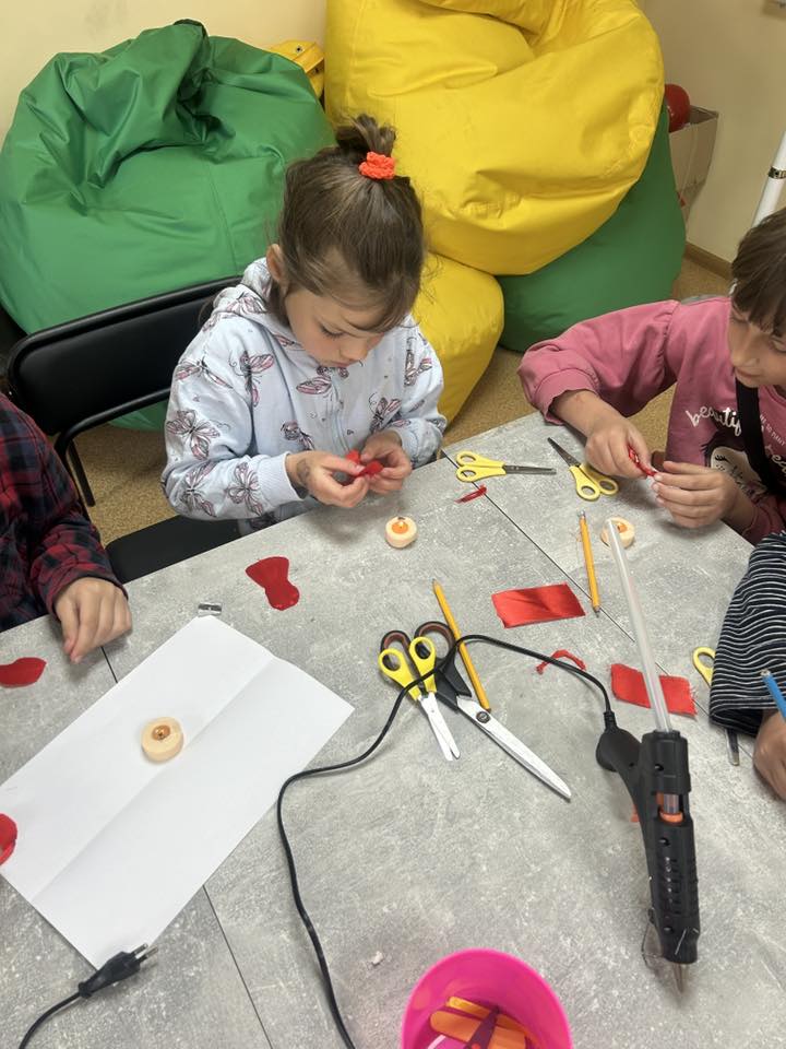 Під час майстер-класу з дітьми було проведено пізнавальну бесіду про значення Дня Перемоги у Другій світовій війні та про важливість символу червоного маку. Діти дізналися про історію виникнення цього символу в українському фольклорі та про те, як мак став символом пам’яті та перемоги в контексті святкування Дня Перемоги. Вони з великим задоволенням створювали квіти червоного маку з різноманітних матеріалів, таких як стрічки та фетр, вкладаючи у кожну роботу частинку своєї душі та пам’яті.