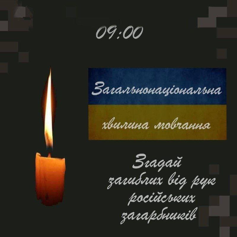 Вся Україна сьогодні вшановує хвилиною мовчання пам’ять загиблих унаслідок російської агресії. О 9:00 зупиняється час, щоб згадати тих, хто віддав своє життя за свободу та незалежність України. Ця загальнонаціональна хвилина мовчання – це символ нашої єдності та шани до героїв, які захищали рідну землю.