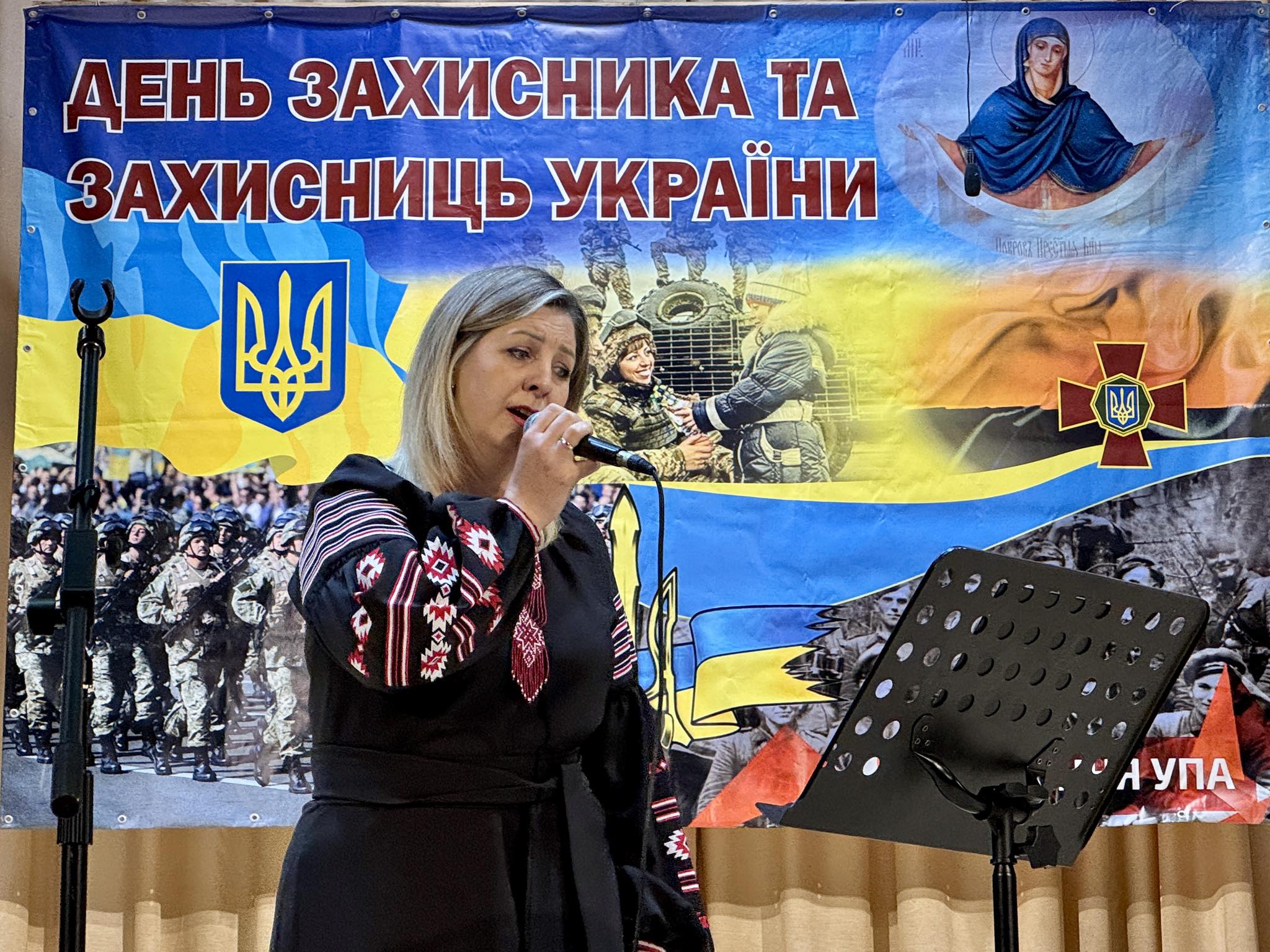 • Викладачка Миколаївської дитячої школи мистецтв (МДШМ) Вікторія Старунчак виконала пісню «Мій Бог у окопі п’є чорний чай».