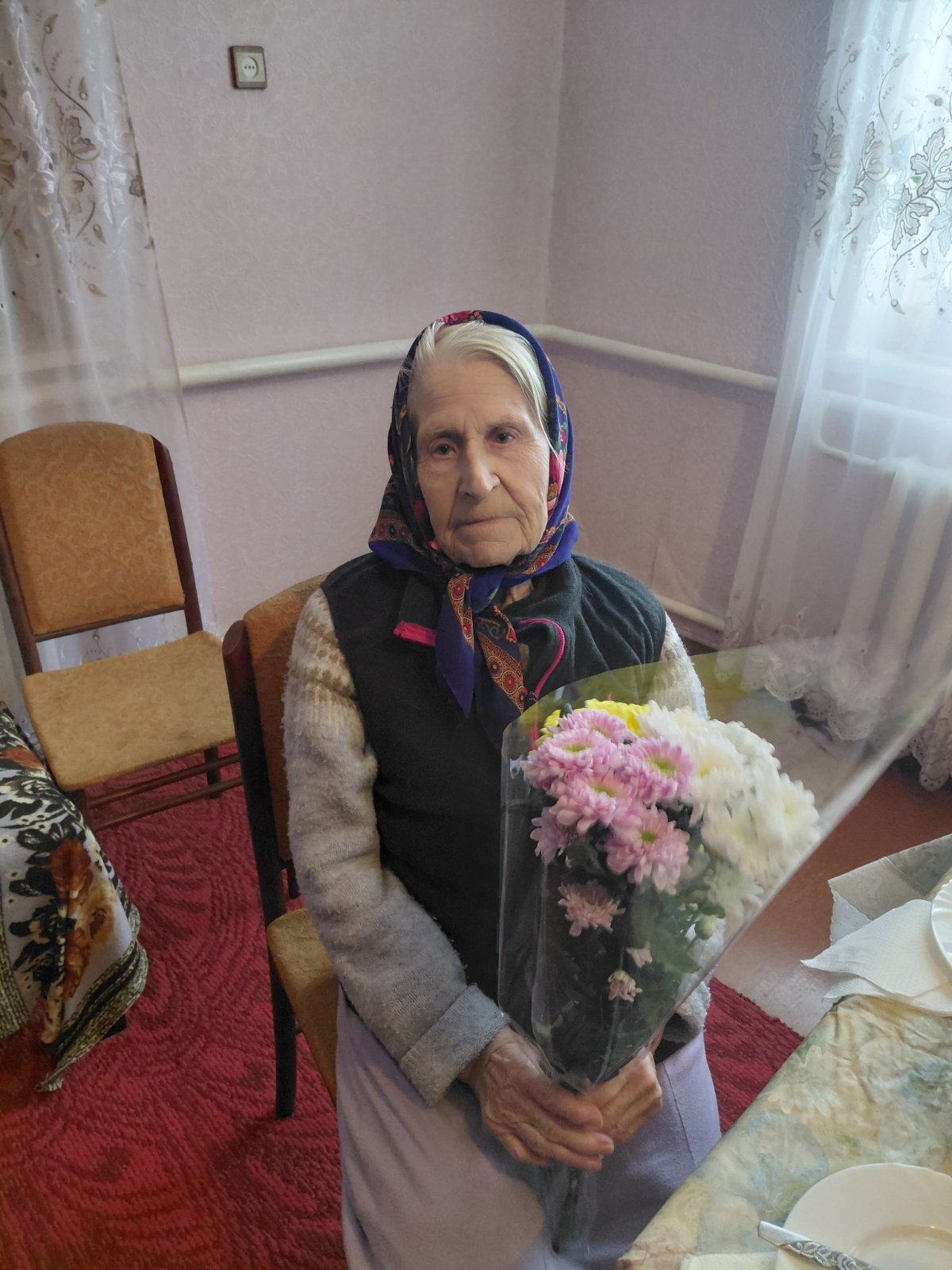 Ювілярка отримала щирі слова вдячності, побажання міцного здоров’я, душевного спокою, родинного тепла, злагоди, миру, Божого оберегу на многая літа та ще відсвяткувати 100-річний ювілей в оточенні рідних та близьких.