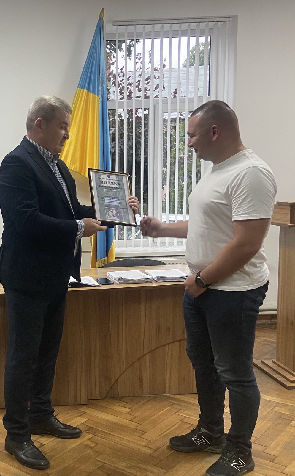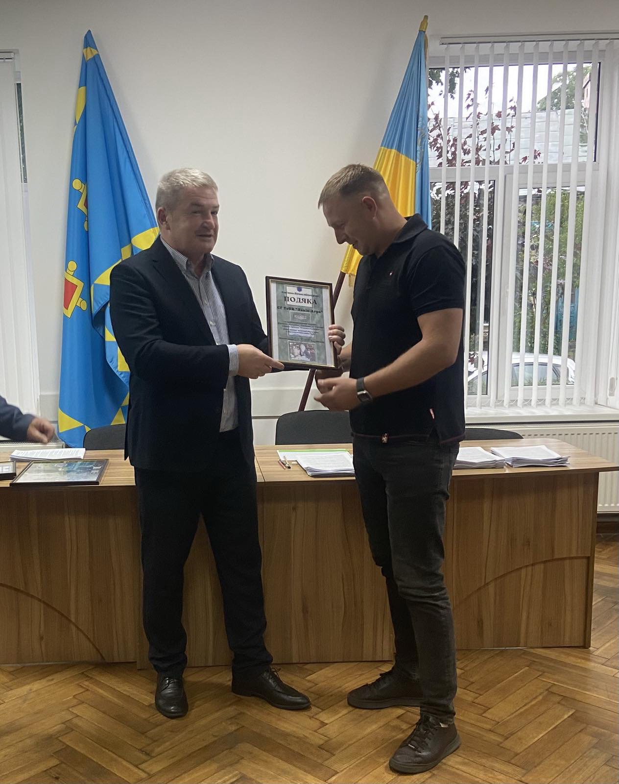 – за вагомий внесок у підтримку наших захисників, придбання на благодійному аукціоні “Пташки Перемоги” унікального лоту — копії стародавньої гривні київського типу шестикутної форми, яка використовувалась на території Київської Русі у XI–XIII століттях, Ігоря Лесишака (ФГ «ЛІМ»), депутата міської ради Назарія Замулу (СГ ТзОВ «ЛЬВІВ-АГРО»), Володимира Хабу (ТзОВ «ГАЗІК НЕТ»), Бориса Рака, депутата міської ради Василя Марунчака.