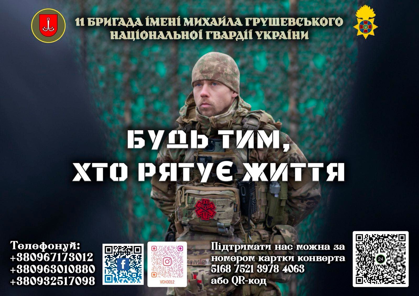 11 бригада імені Михайла Грушевського Південного оперативно-територіального об’єднання Національної гвардії України розпочала набір бойових медиків та медичного персоналу. Підрозділ шукає фахівців, які готові працювати у найскладніших умовах, підтримувати поранених побратимів та втілювати ключові принципи гуманності, професійності й стійкості.