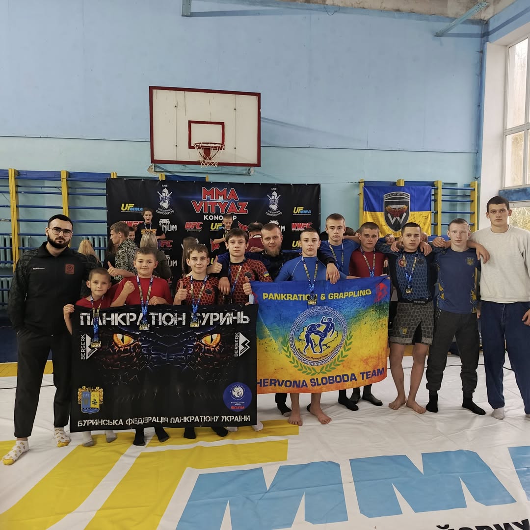 11 жовтня в місті Конотоп відбувся захопливий Чемпіонат Сумської області зі змішаних єдиноборств, який зібрав найсильніших спортсменів регіону. Буринська збірна, що спеціалізується на панкратіоні та грепплінгу, також гідно представила свій район. Наші молоді таланти продемонстрували виняткову майстерність та здобули низку перемог, підтвердивши свій високий рівень підготовки.