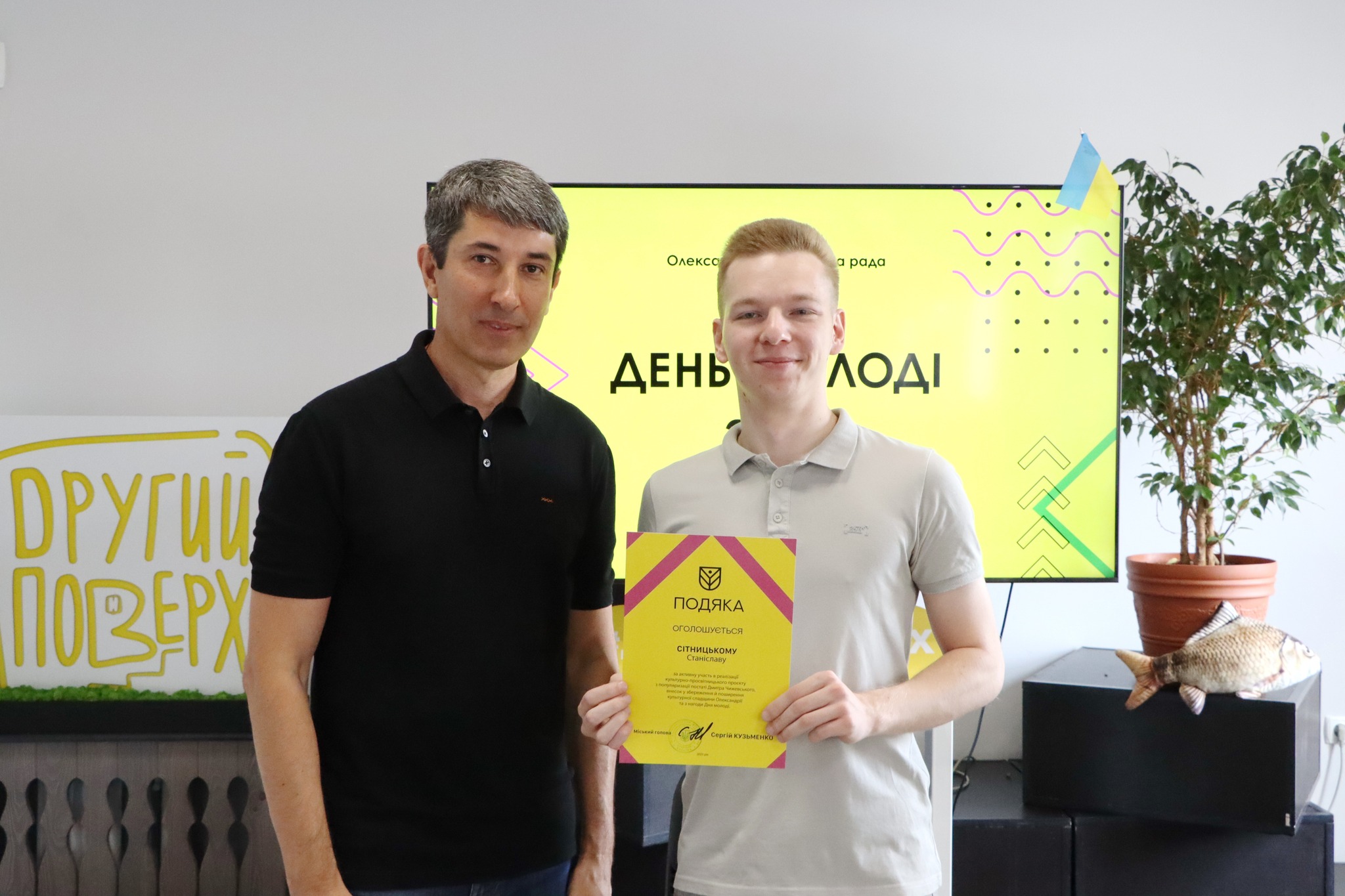11 серпня, з нагоди Міжнародного дня молоді, у просторі «Другий поверх» відбулося нагородження найактивніших представників молоді Олександрійської громади. Подяки та квіти вручив міський голова Сергій Кузьменко.