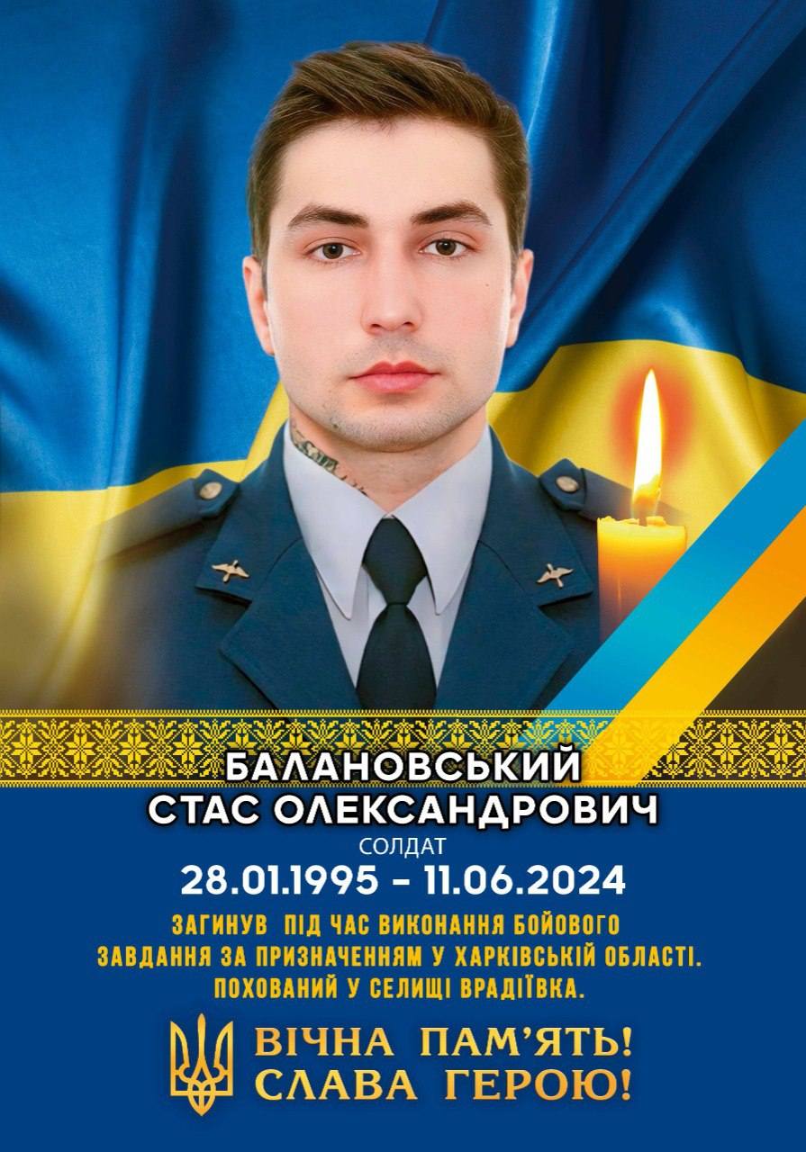 Щира вдячність та безмежна шана мужньому Захиснику! Ми завжди пам’ятатимемо Стаса Балановського, як людину незламної волі та сили духу, воїна, який віддав своє життя за наше мирне майбутнє у вільній Україні! Спочивай з миром, Герою!