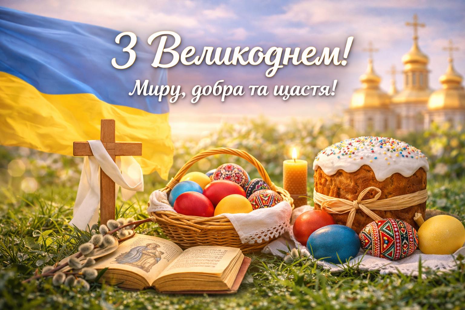 Щиро вітаю вас із найвеличнішим християнським святом — Воскресінням Христовим! У цей благословенний час, коли світ пробуджується, а душа прагне просвітлення, нехай велична радість Великодня торкнеться кожного серця, наповнить його вірою, зміцнить надією й огорне любов’ю. Нехай разом із урочистим пасхальним передзвоном у ваше життя увійде мир, а з теплом весняного сонця — впевненість у доброму й щасливому майбутньому.