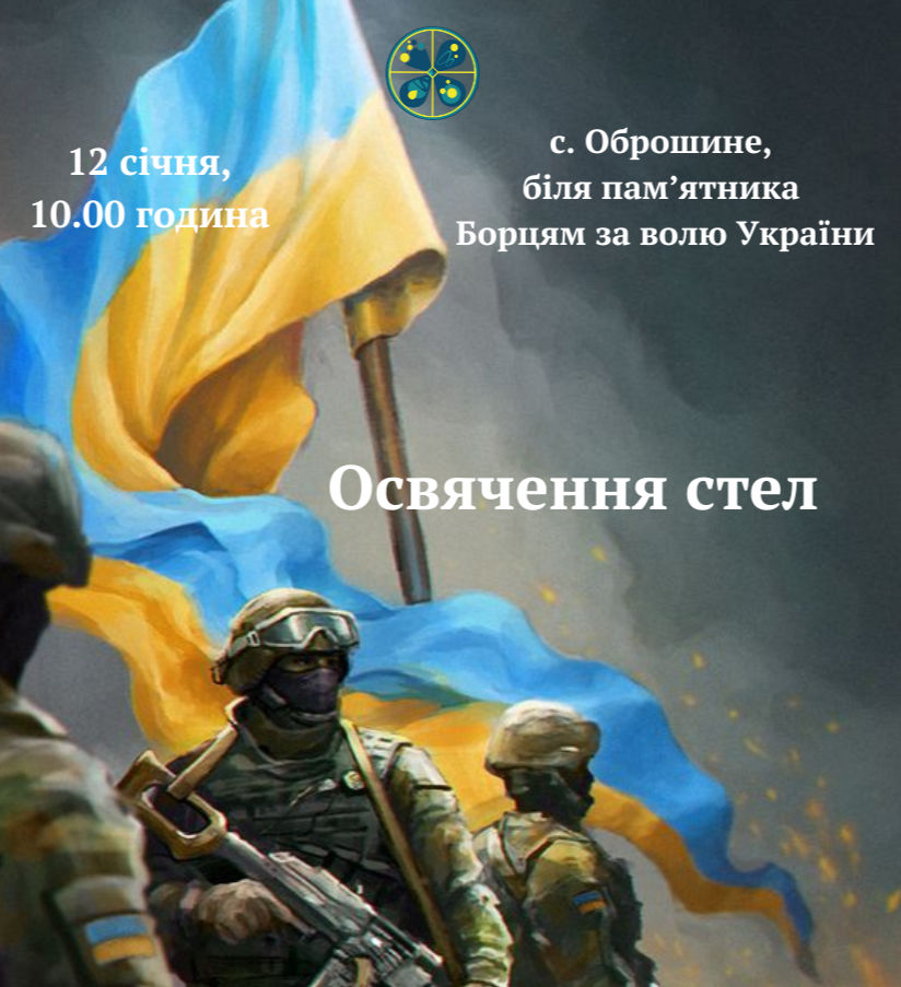 12 січня, у понеділок, о 10:00 біля пам’ятника Борцям за волю України в с. Оброшино відбудеться освячення стел загиблих Героїв.