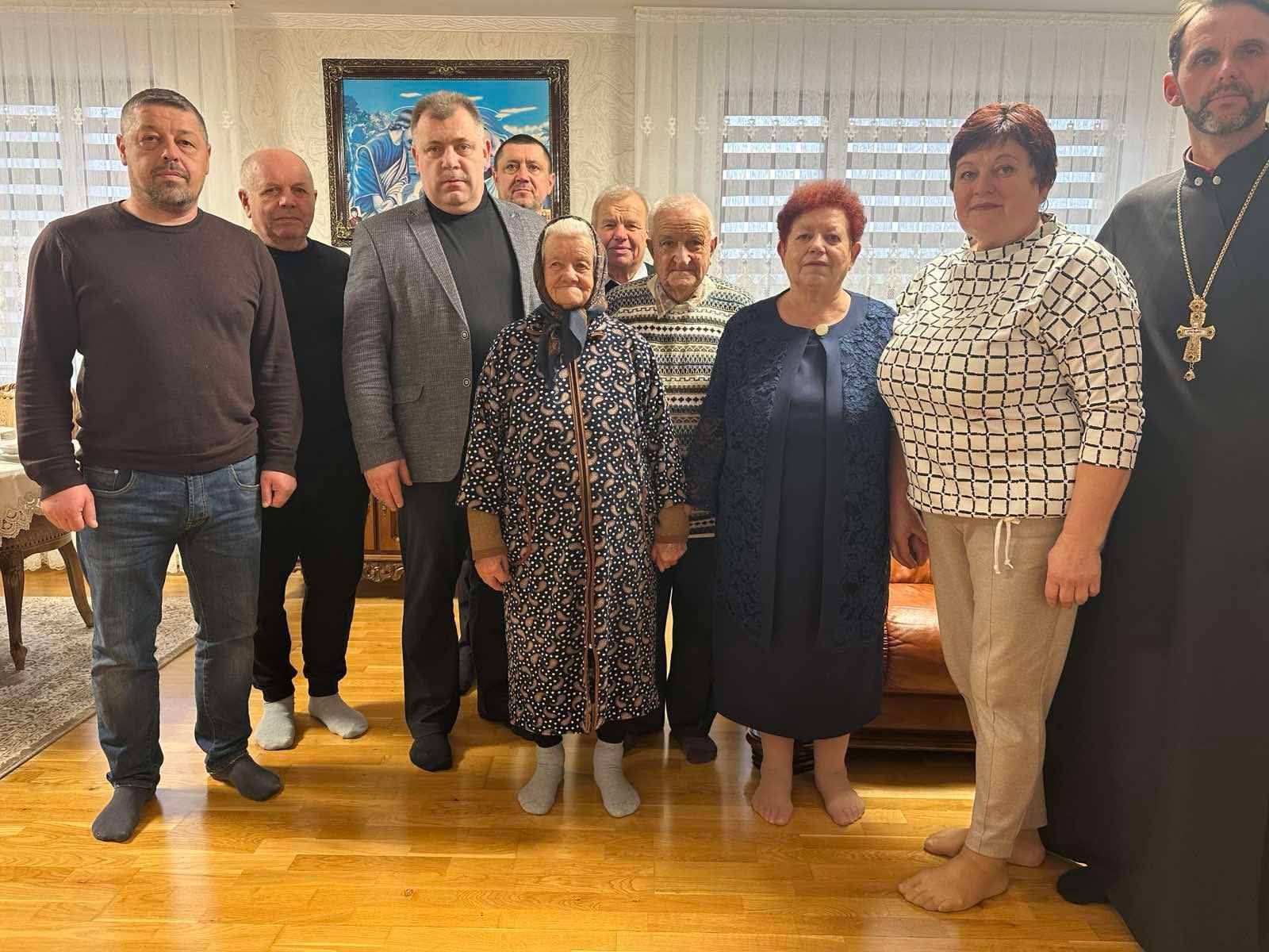 Сьогодні вітали іменинницю з особливою подією: міський голова Віктор Симканинець, староста Брідського старостинського округу Іван Зем’янський, депутати Іршавської міської ради: Мирослава Бородкіна та Іван Дешко, настоятель храму Покрови Пресвятої Богородиці с. Дешковиця протоієрей Василій Шерегій, голова Іршавської районної ради ветеранів України Петро Король та голова місцевого осередку цієї ж організації с. Брід та с. Дешковиця Михайло Ломага. Вони висловили щирі слова вдячності й поваги, побажали ювілярці здоров’я, миру, добробуту, душевного спокою та вручили подарунки.