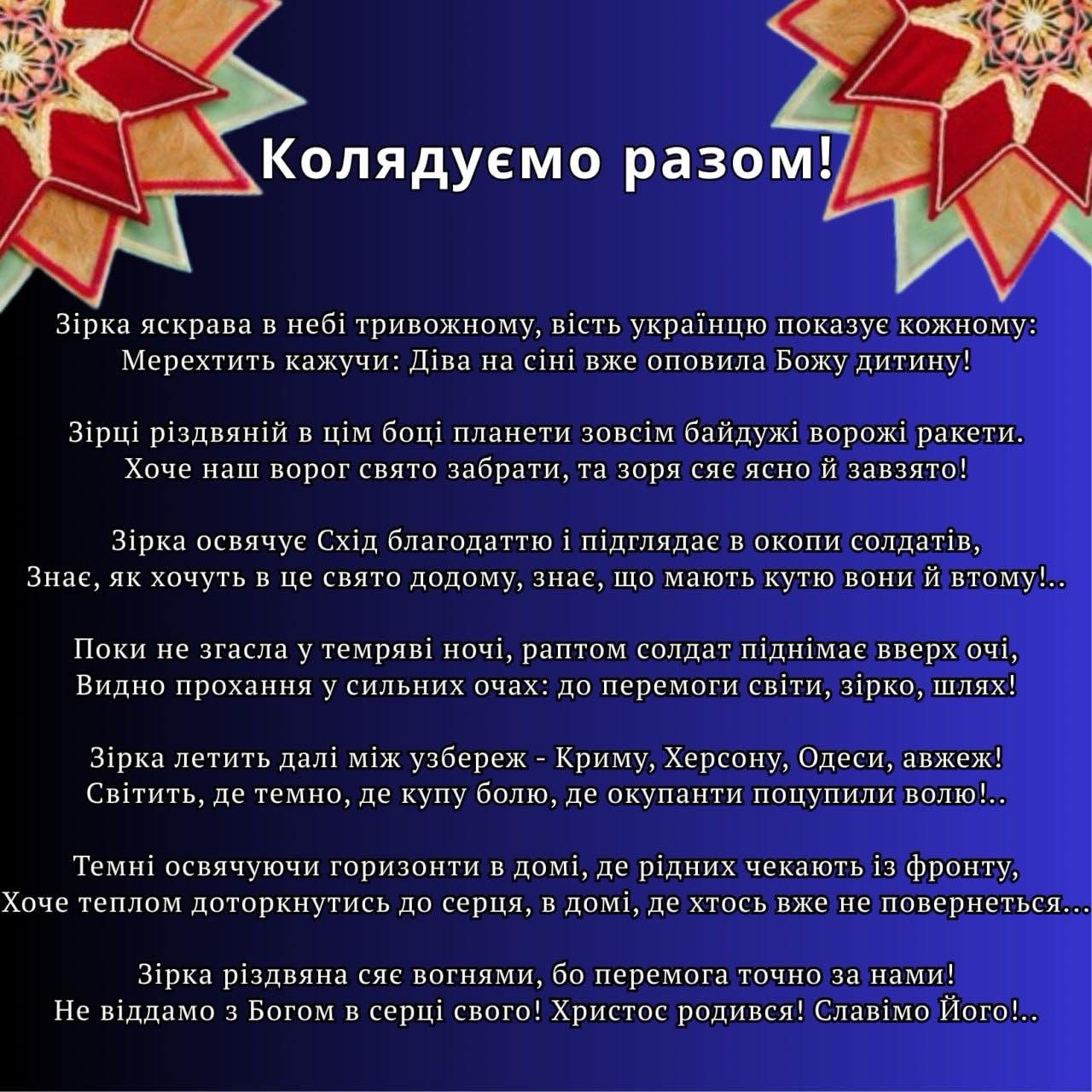 Спеціально до оголошення додаємо текст колядки, щоб кожен з вас мін долучитись до її виконання! Зберігайте картинку з текстом, а на фестивалі долучайтесь до спільно виконання!
