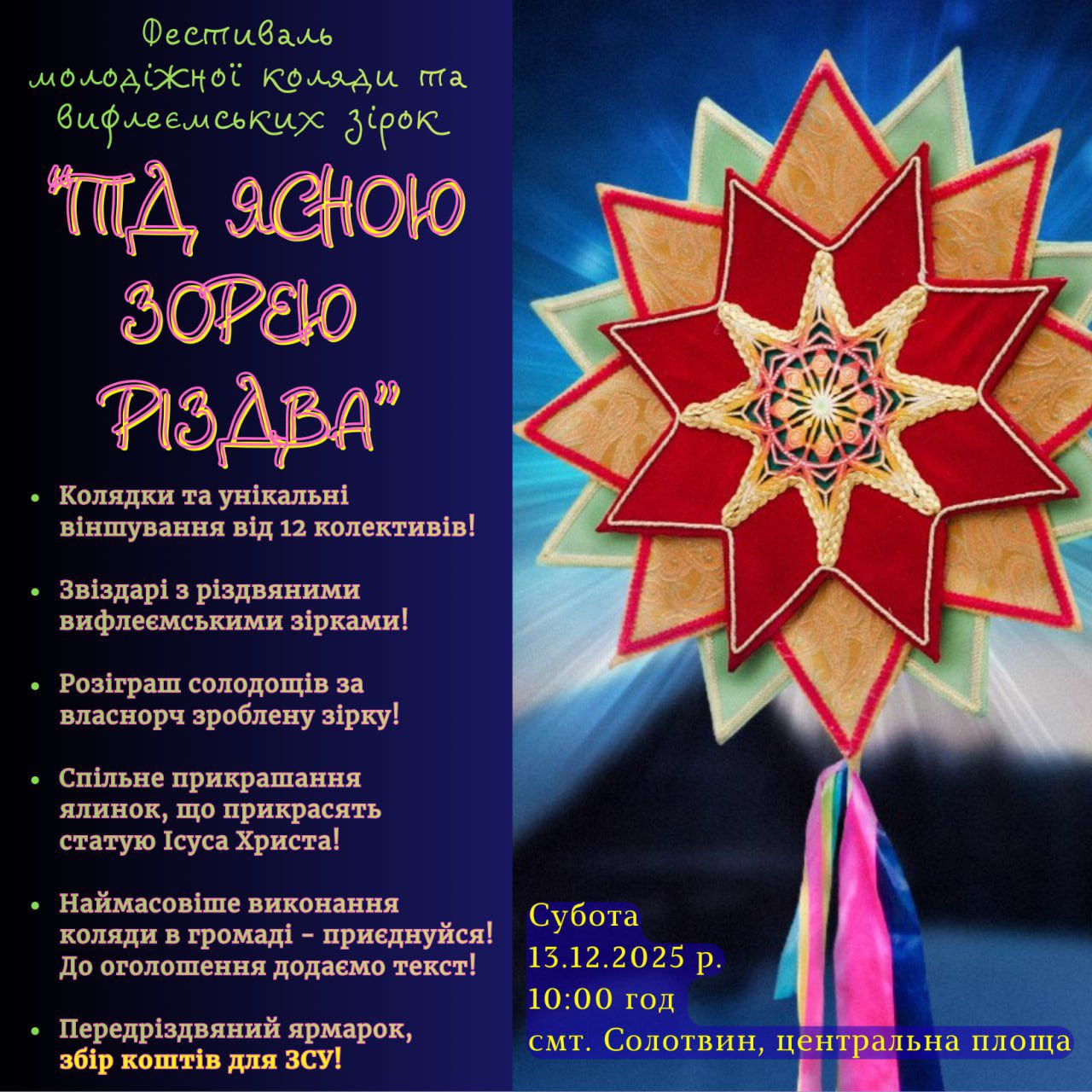13 грудня 2025р о 10:00год на площі селища Солотвин відбудеться почин Різдвяних…