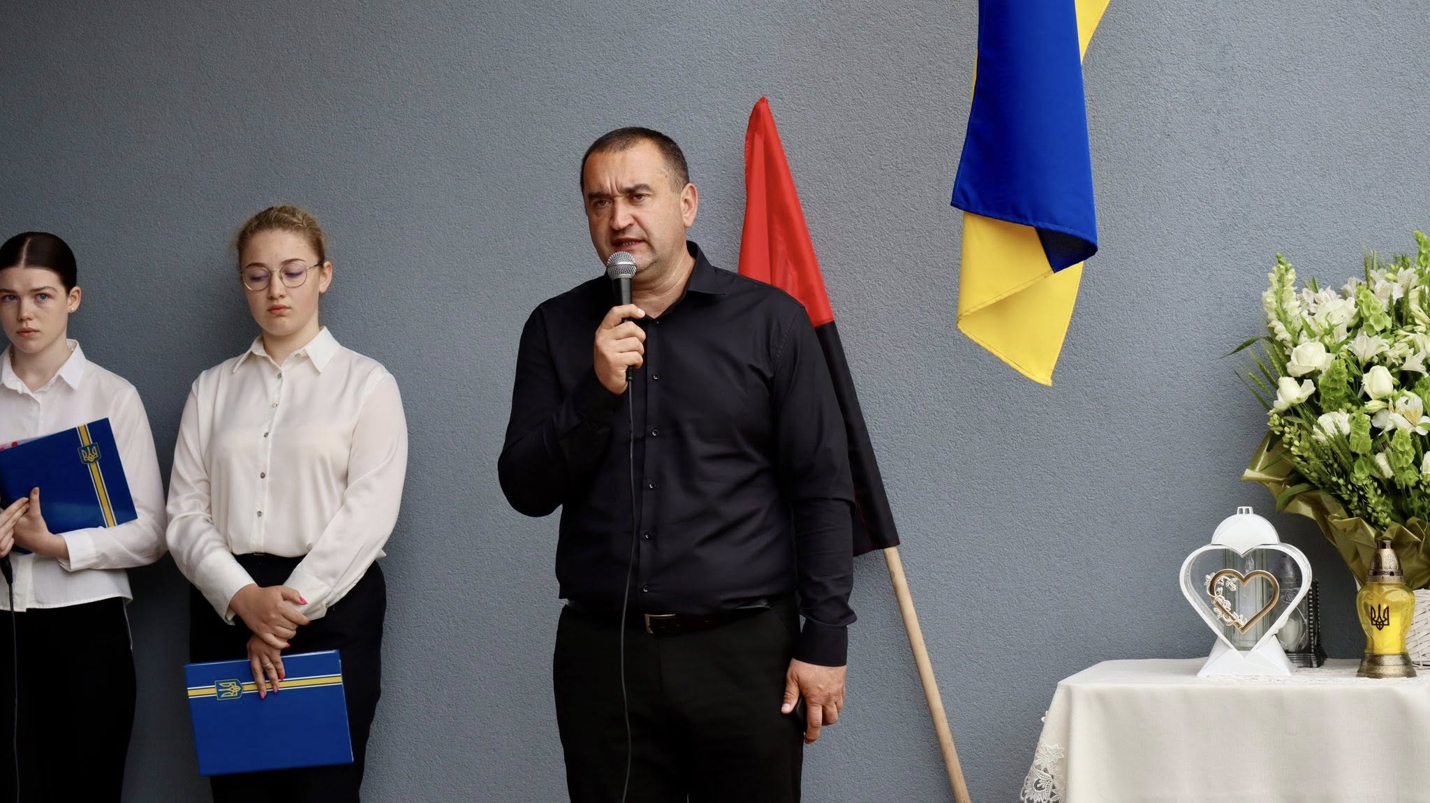 Отець Павло, настоятель храму св. Миколая с. Бердихів, освятив меморіальний знак та дошку. Цей обряд став символом вшанування пам’яті Героя та підкреслив важливість його подвигу для майбутніх поколінь.