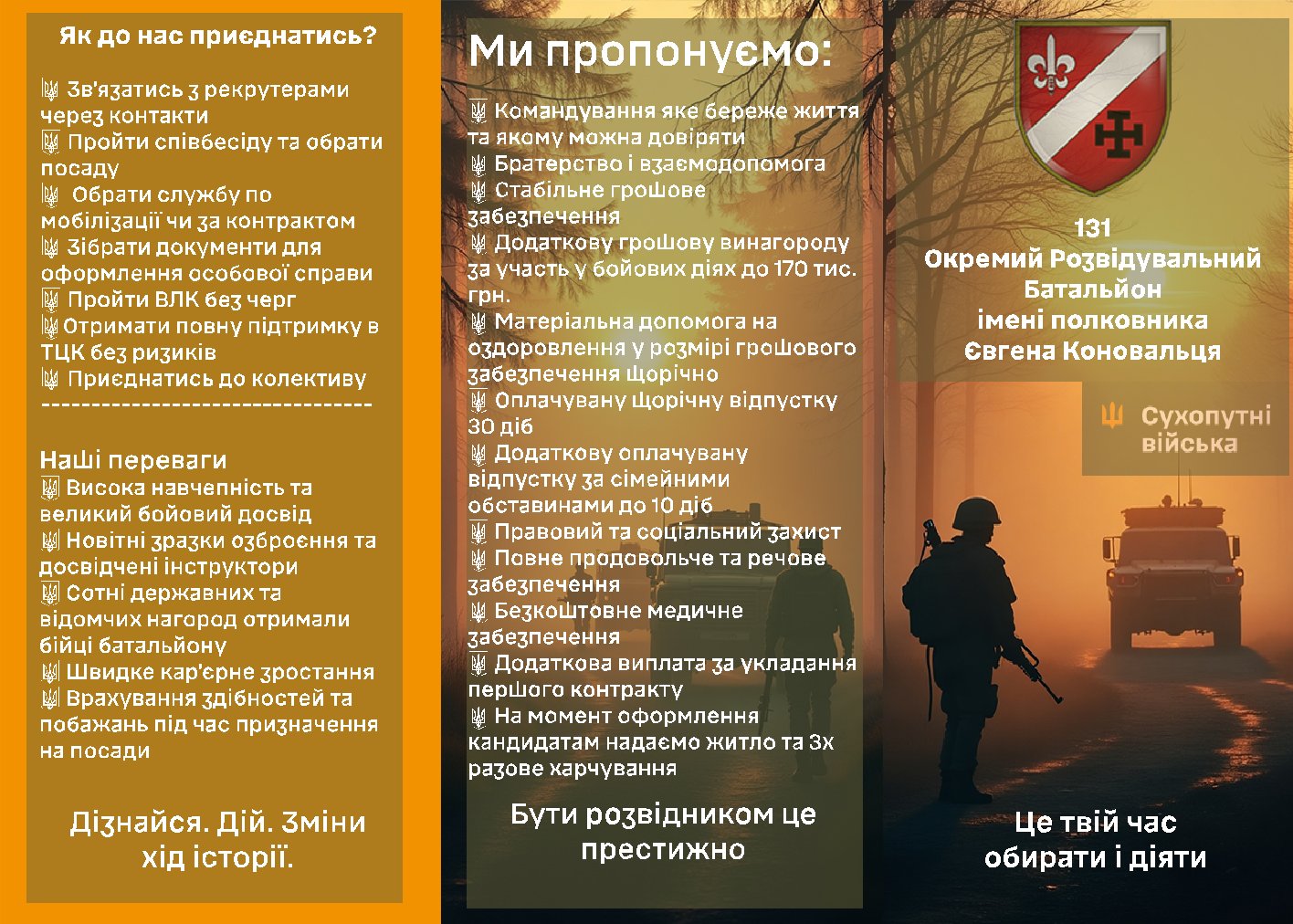 131 ОРБ: Рекрутинг до розвідувального батальйону імені Євгена Коновальця