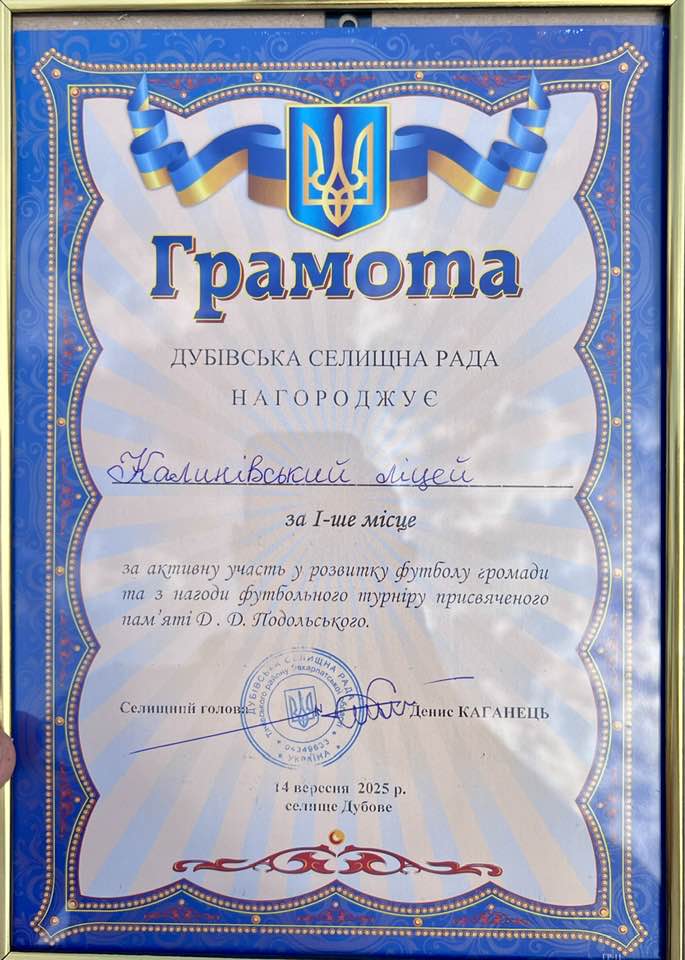 Перемога команди Калинівського ліцею є результатом наполегливої праці, злагодженої гри та відмінного тренерського керівництва. Вітаємо юних спортсменів та їхніх наставників із цим вагомим досягненням! Бажаємо їм не зупинятися на досягнутому, продовжувати розвивати свої футбольні таланти, прагнути до нових вершин та здобувати ще більше перемог як на місцевих, так і на майбутніх змаганнях вищого рівня.