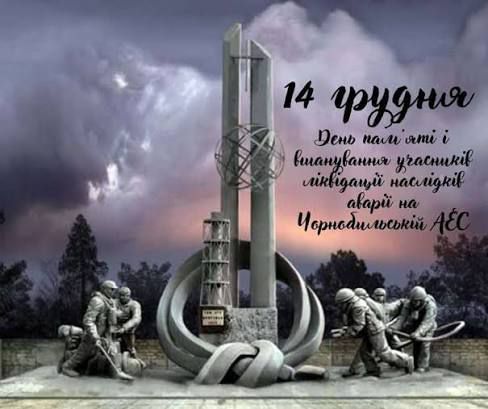 14 грудня в Україні вшановують героїчних і самовідданих людей, які ціною власного життя локалізували аварію та врятували світ від радіаційного забруднення внаслідок техногенної катастрофи на Чорнобильській атомній електростанції в 1986 році. Цей день ще раз нагадує нам про надважливість особливих заходів безпеки у сфері використання атомної енергетики. Ми гостро розуміємо це і зараз- в час війни. Глибоко шануємо і дякуємо усім ліквідаторам аварії.Вічна світла пам’ять тим, хто віддав своє життя, зупинивши страшну біду.