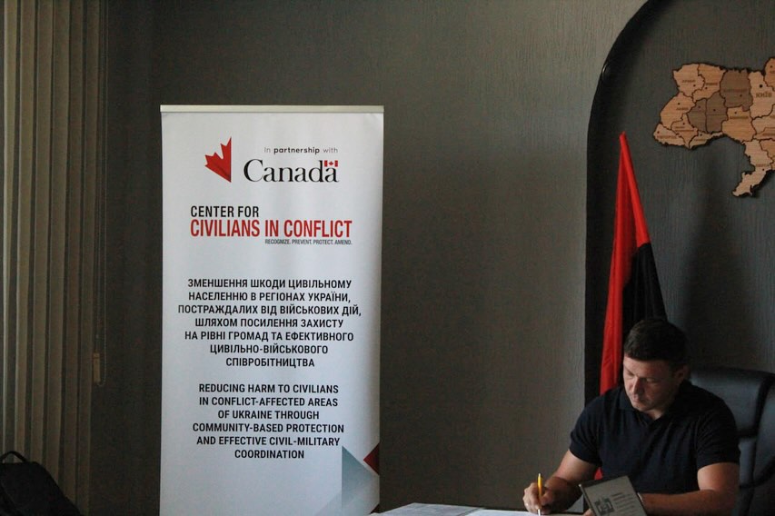Захід проходив у межах проєкту «Зменшення шкоди цивільному населенню в регіонах України, постраждалих від військових дій, шляхом посилення захисту на рівні громад та ефективного цивільно-військового співробітництва».
