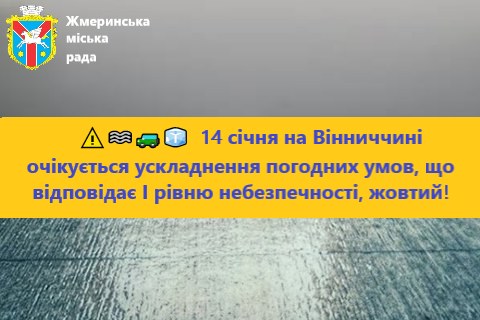 ❗️ ❄️ 🌫🚙🧊 14 січня на території Вінницької області очікується ускладнення погодних умов, що відповідає I рівню небезпечності, жовтий!