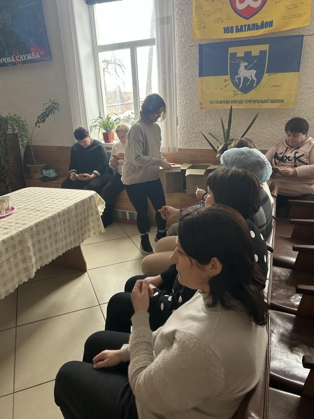 Також матері військовослужбовців передали теплі в’язані шкарпетки. У зв’язку з відключенням електроенергії мати військового випікала частину печива удома та передала його разом із фінансовою допомогою та засобами особистої гігієни до спільних пакунків. Уся зібрана допомога буде передана волонтерами безпосередньо до зони ведення бойових дій.