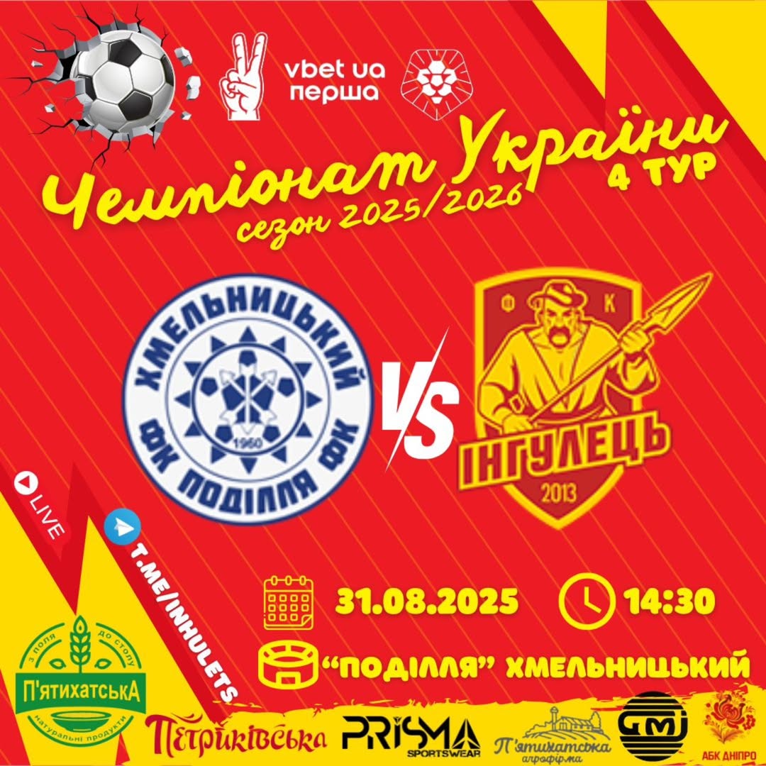 📅 31 серпня | 🕝 14:30 | 📍Стадіон “Поділля”, Хмельницький