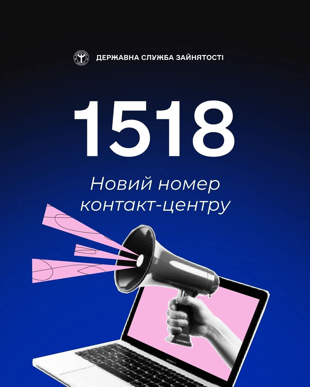 ☝️ **Державна служба зайнятості запустила новий короткий номер контакт-центру для клієнтів – 1518. Старий номер 0 800 600 288 продовжить працювати, як альтернативний, та буде обслуговуватися ще мінімум три місяці.**