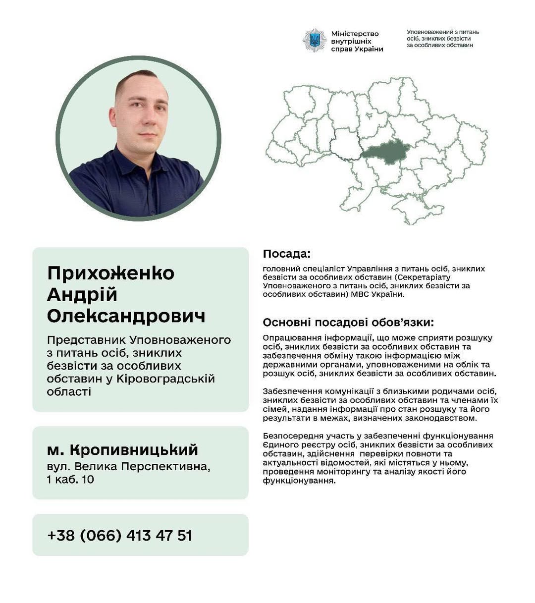 16 грудня 2025 року, у м. Новомиргород, відбудеться зустріч представника Уповноваженого з питань осіб, зниклих безвісти за особливих обставин в Кіровоградської області Андрія Прихоженка з родинами осіб, зниклих безвісти та полонених військовослужбовців.
