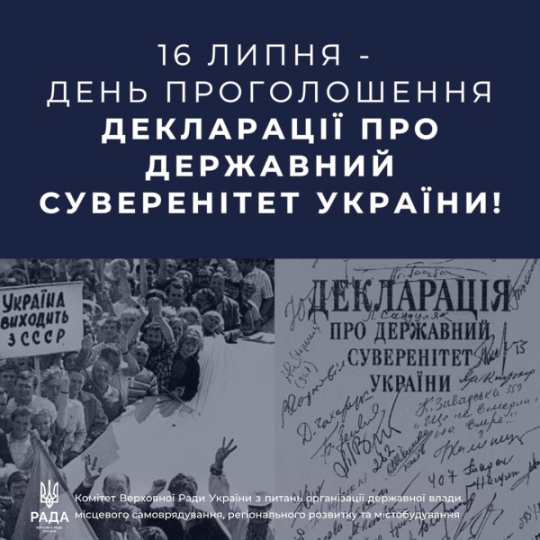 16 липня 1990 року Верховна Рада Української РСР прийняла історичний документ – Декларацію про державний суверенітет України. Цей акт став важливим кроком на шляху до Незалежності України, яка була офіційно проголошена 24 серпня 1991 року.