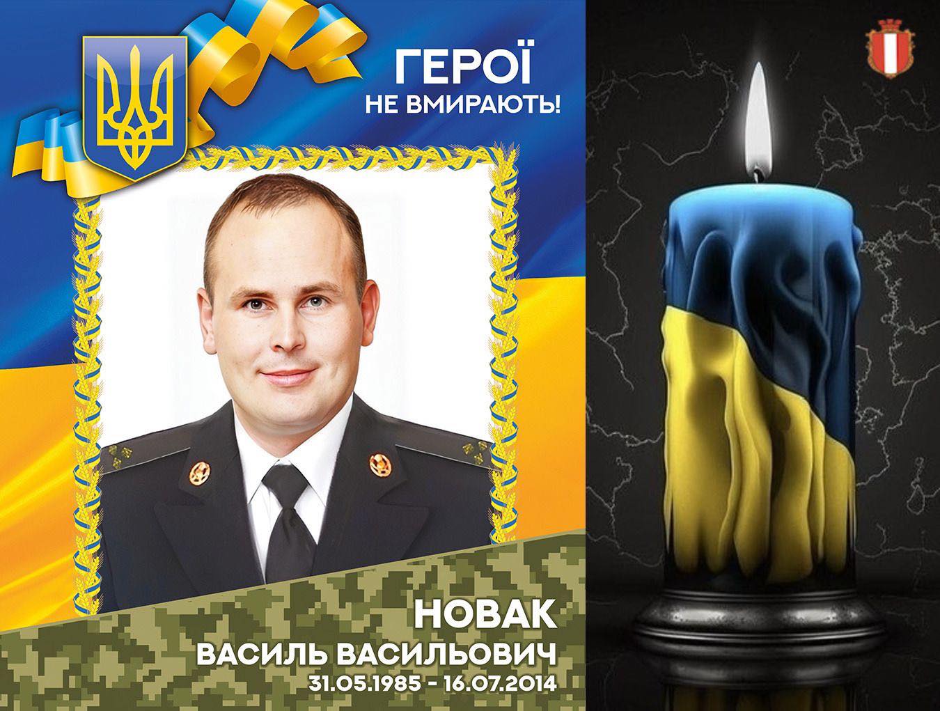 16 липня 2014 року в прикордонному селі Маринівка на Донеччині, потрапивши у ворожу засідку, загинув наш земляк, заступник командира роти з озброєння 28-ї механізованої бригади, старший лейтенант Василь Новак.